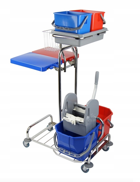 - Практичний візок для обслуговування та миття підлоги з ручками та підставкою для пакетів для сміття. Ідеально підходить для готельної, медичної та клінінгової індустрії.
