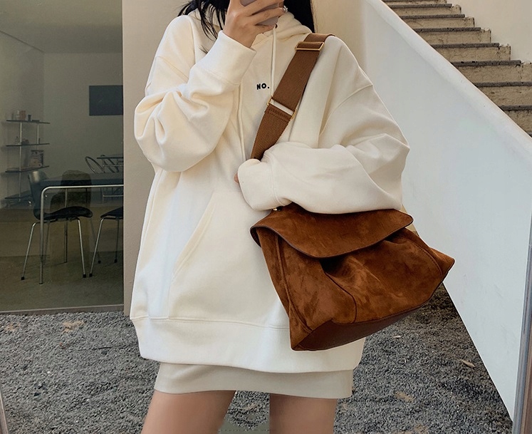 Стильна сумка на товстому ремінці з приємної на дотик замшевої екошкіри . Має одне велике основне відділення з кишенею на блискавці для телефону, документів або інших дрібниць. Закривається клапаном із застібкою ззовні та карабіном зсередини. Всі металеві елементи золотистого кольору. Сумка оснащена модним широким ремінцем, який завдяки функції регулювання довжини дозволяє регулювати положення носіння під ваші індивідуальні потреби. Простий дизайн і велика місткість роблять сумку ідеальною для багатьох випадків, як офіційного, так і щоденного використання.