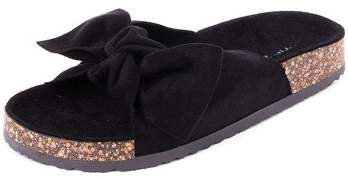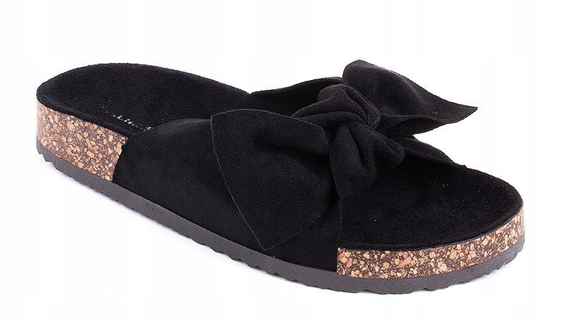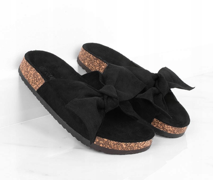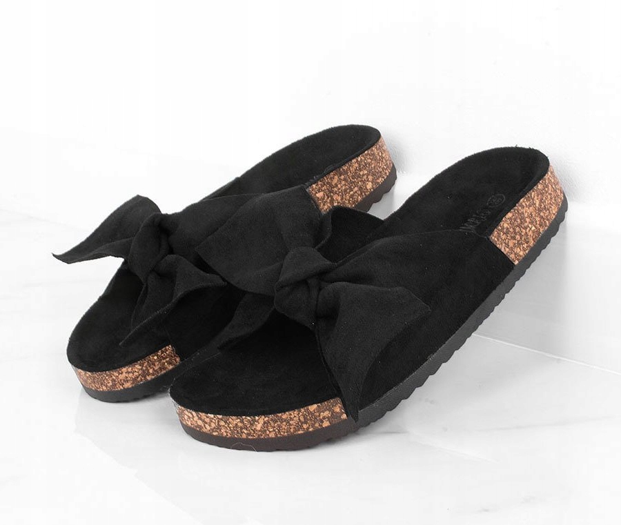 Шльопанці з бантом – це дуже елегантне та зручне взуття. Модель з відкритим носком і плоскою корковою підошвою підійде для любительок незвичайного взуття, яке можна носити на босу ногу. Виріб виконано з матеріалу, схожого на шкіру, і тканини, що імітує замшу, що робить його надзвичайно елегантним і дозволяє поєднувати його з повсякденним, літнім стилем. В'єтнамки з бантом з нашої пропозиції доступні в декількох розмірах від 36 до 41 номера.