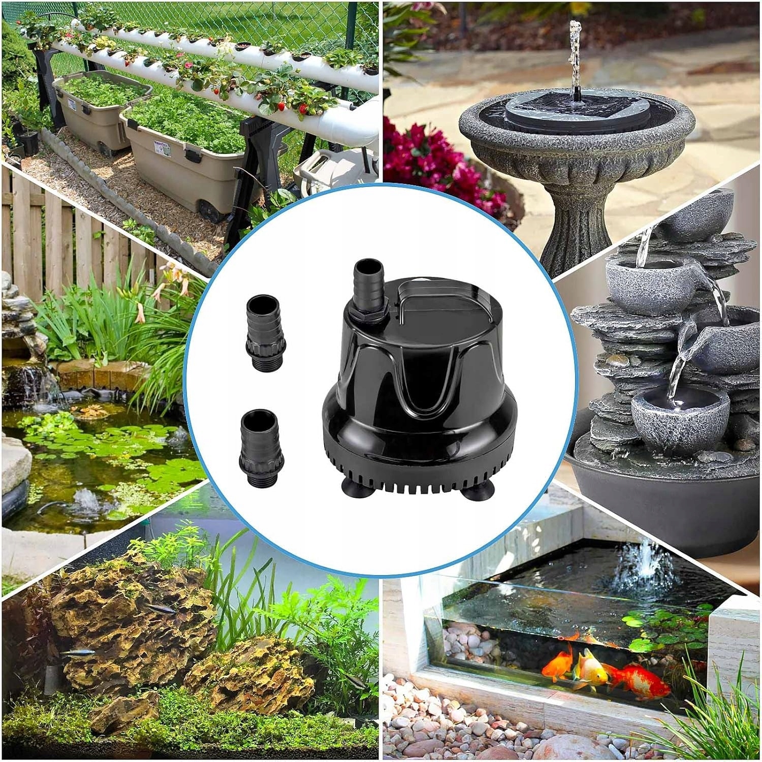💧💧800 л/год - Маленький, але потужний: цей акваріумний насос потужністю 15 Вт забезпечує швидкість потоку до 800 л/год і максимальну висоту подачі 1,8 м. Наш водяний насос оснащений водопровідною трубою довжиною 1,8 м і двома насадками (10 мм і 15 мм), які підходять для акваріумів, ставків, садових фонтанів, гідропонних систем тощо.