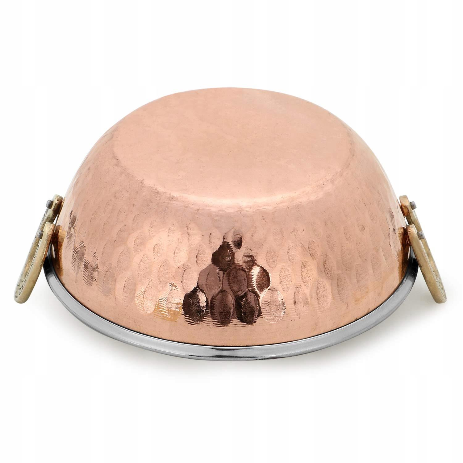 - Точкова позначка : традиційні індійські чаші карахі традиційно використовуються для подачі біряні, каррі, даалу тощо, унікальна посудина для всіх типів кухні, поверхня з нержавіючої сталі зберігає смак і харчову цінність їжі, подвійний як приваблива кухня, прекрасна обробка пальто Чаші оголюються, зовнішнє покриття мідного матеріалу найвищої якості, вистелене міцною нержавіючої сталі