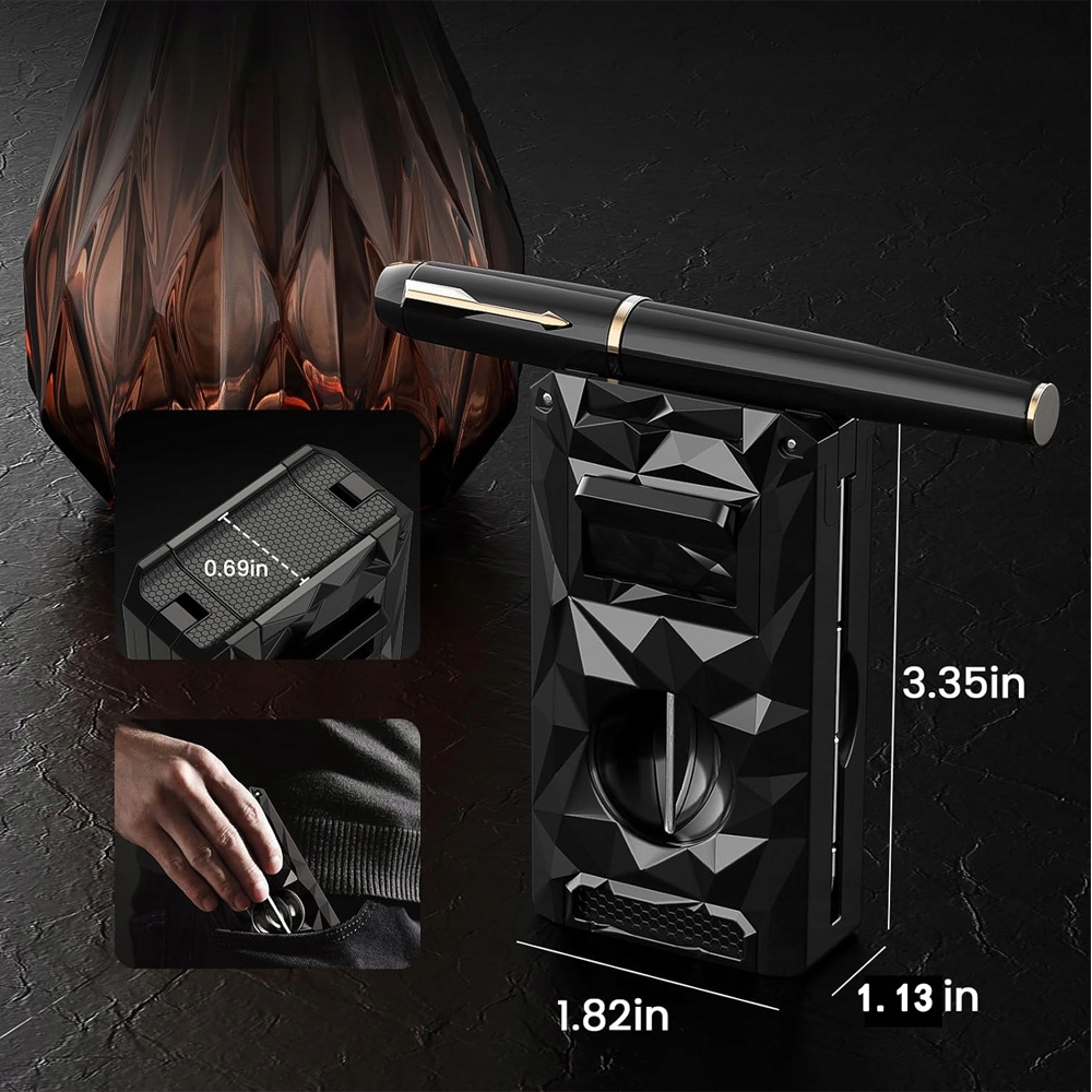 * **Практична підставка: **Відкрийте кришку та вставте запальничку - це перетворюється на підставку для безпечного розміщення вашої сигари.