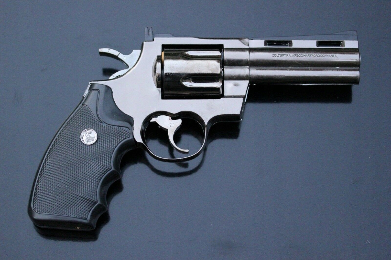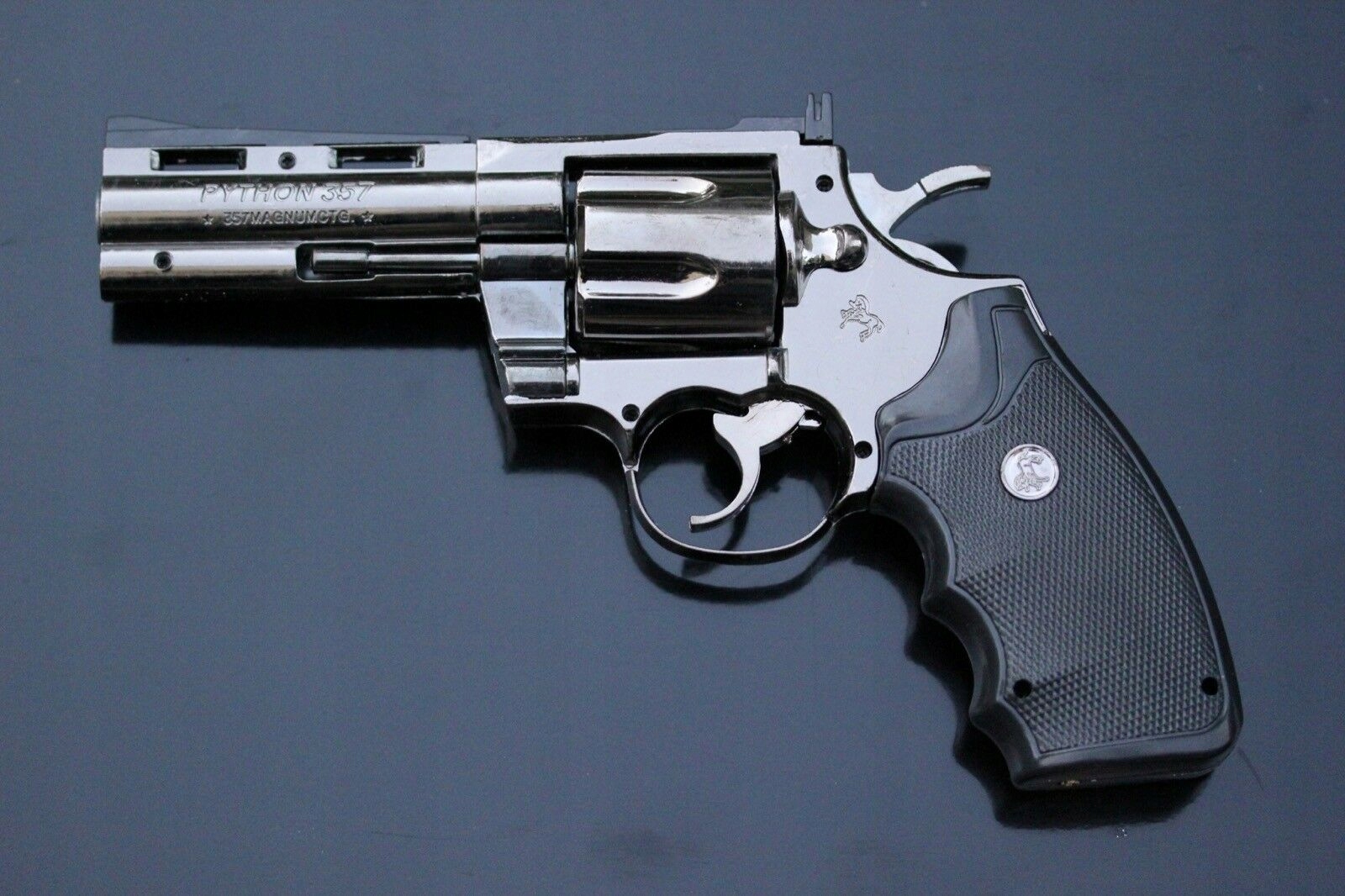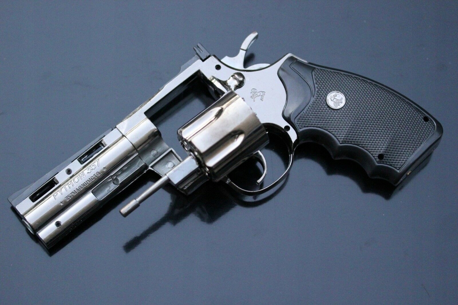 Револьвер Colt Python .357 Legend. Найкопійніший пістолет. Вона їла Smith & Wessons на обід. Вона конкурувала з Джоном Уейном, Джеймсом Гарнером, Пітером Фальком, Клінтом Іствудом, Чарльзом Бронсоном, Пем Ґрієр, Івом Монтаном, Жаном-Полем Бельмондо, Аланом Делоном і навіть Бертом Рейнольдсом.