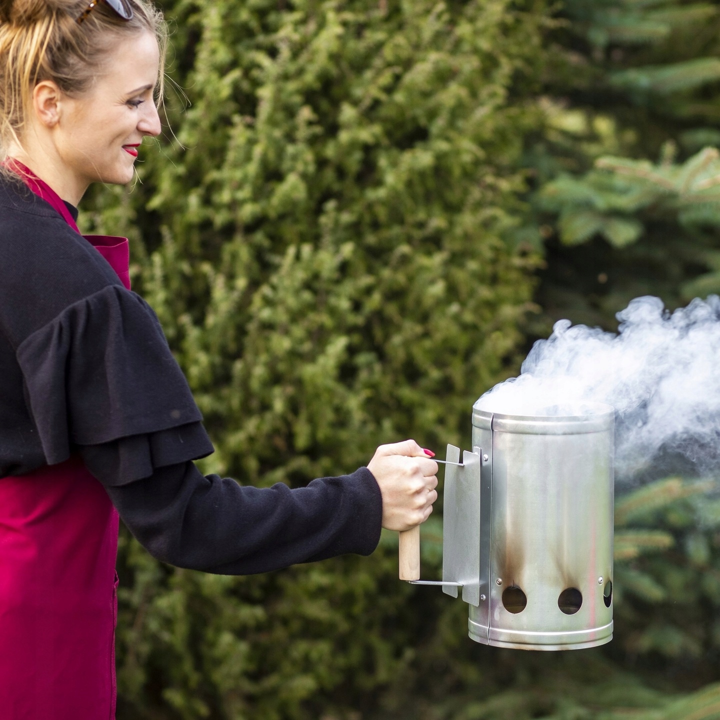 Його можна використовувати як закваску для вугілля чи брикетів для барбекю, а також для розпалювання каміна, багаття чи коптильні. Киньте брикет у розпалювач, запаліть розпал і поставте під розпалювач. Завдяки конструкції димоходу, через короткий час, за допомогою природної тяги, брикети / вугілля перетворюються на вугілля, які ви можете використовувати як основу для розпалювання більшої кількості брикетів або вугілля у вашому грилі