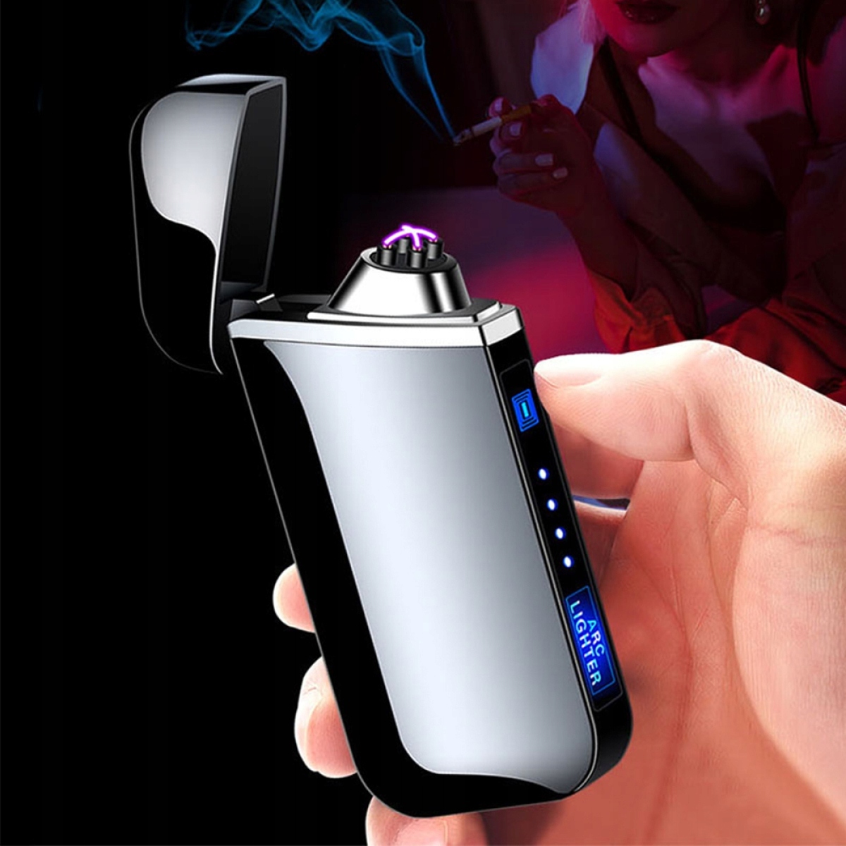 ЗАПАЛЬНИЧКА ЕЛЕКТРИЧНА USB З ПОДВІЙНОЮ ДУГОЮ МЕТАЛЕВА