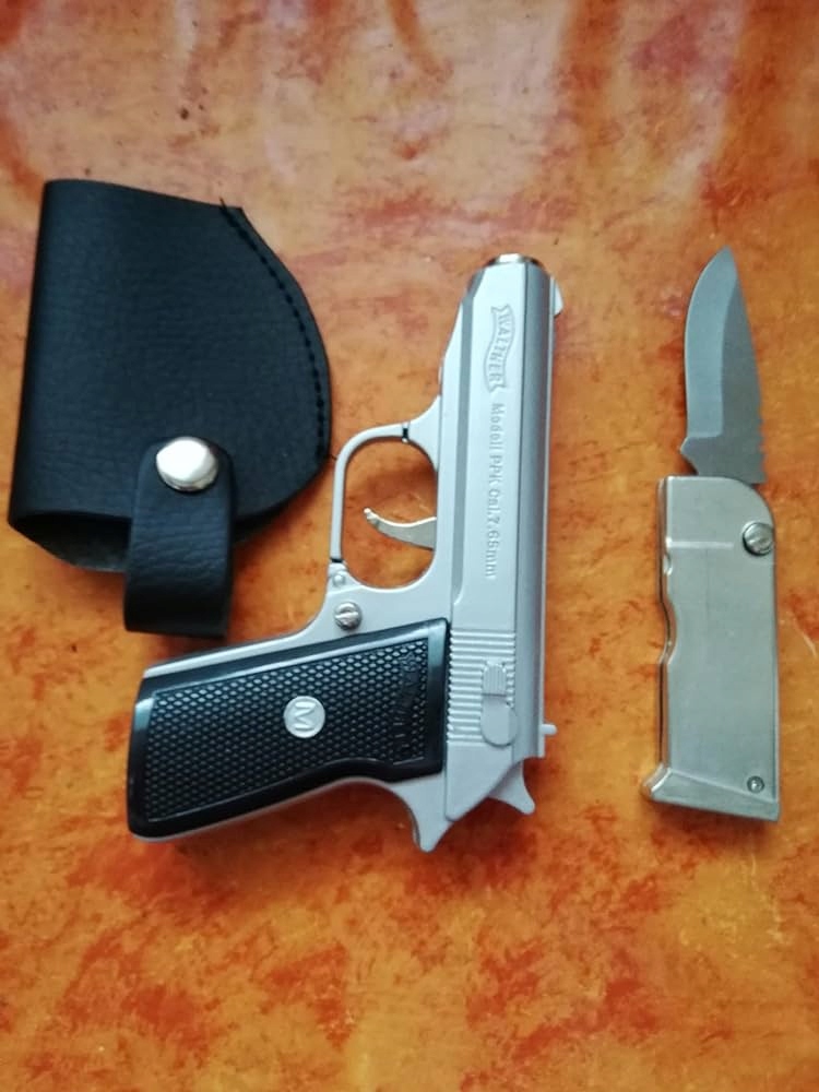 Газова запальничка - пістолет Walther PPK із срібним ножем