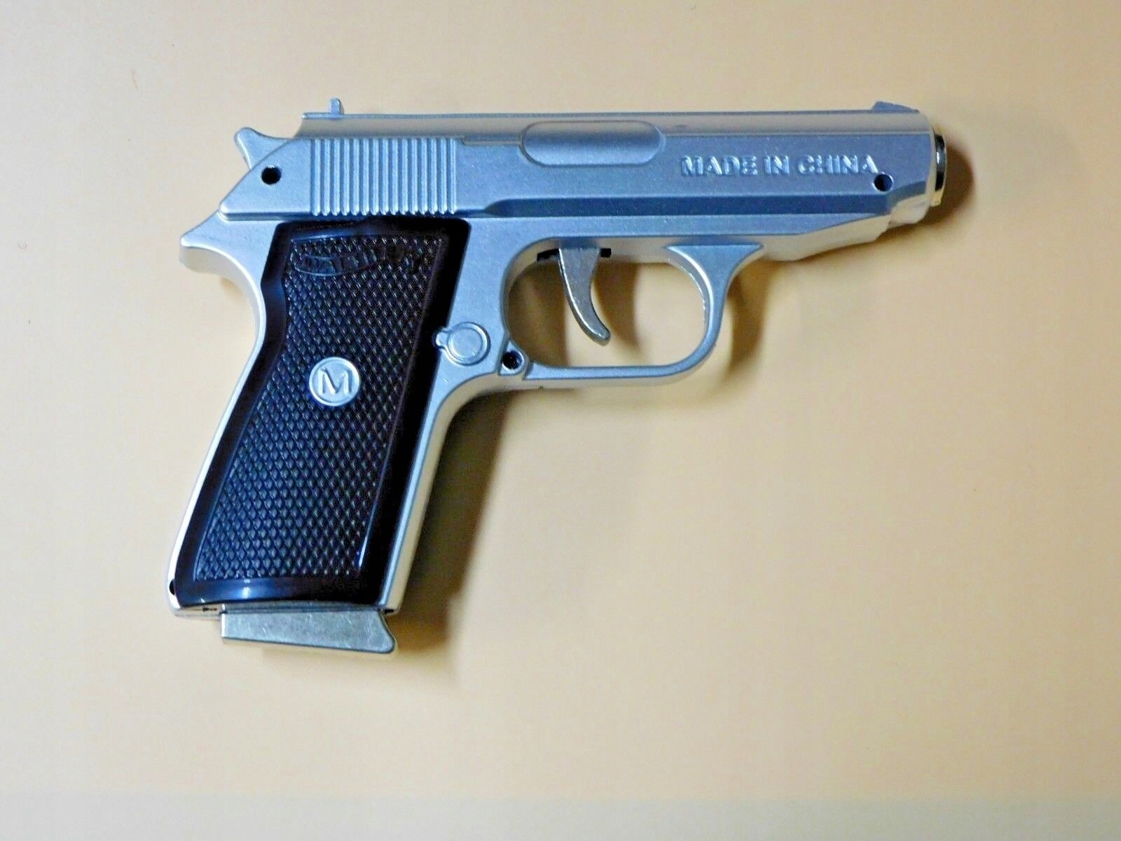 ця запальничка здивує кожного, це зменшена версія пістолета... але це важкий і металевий пістолет Walther PPK.. .так, це знаменитий пістолет, яким користувався успішний агент 007 Джеймс Бонд! Також до запальнички йде кобура, яку можна закріпити на поясі штанів :) і... має знімний магазин (як в оригіналі після натискання кнопки спуску) і, звичайно ж, рухомий курок. Також в журналі є сюрприз у вигляді складного ножа, ручкою якого є магазин.