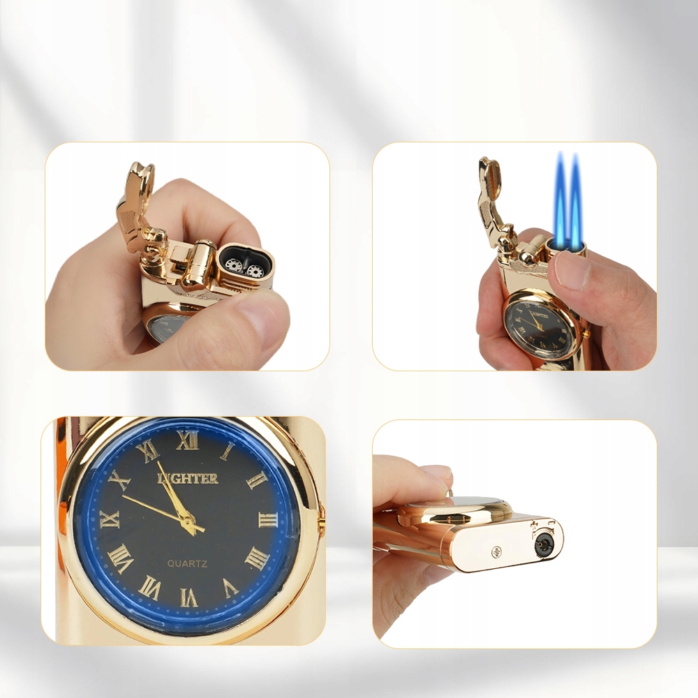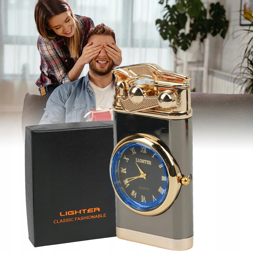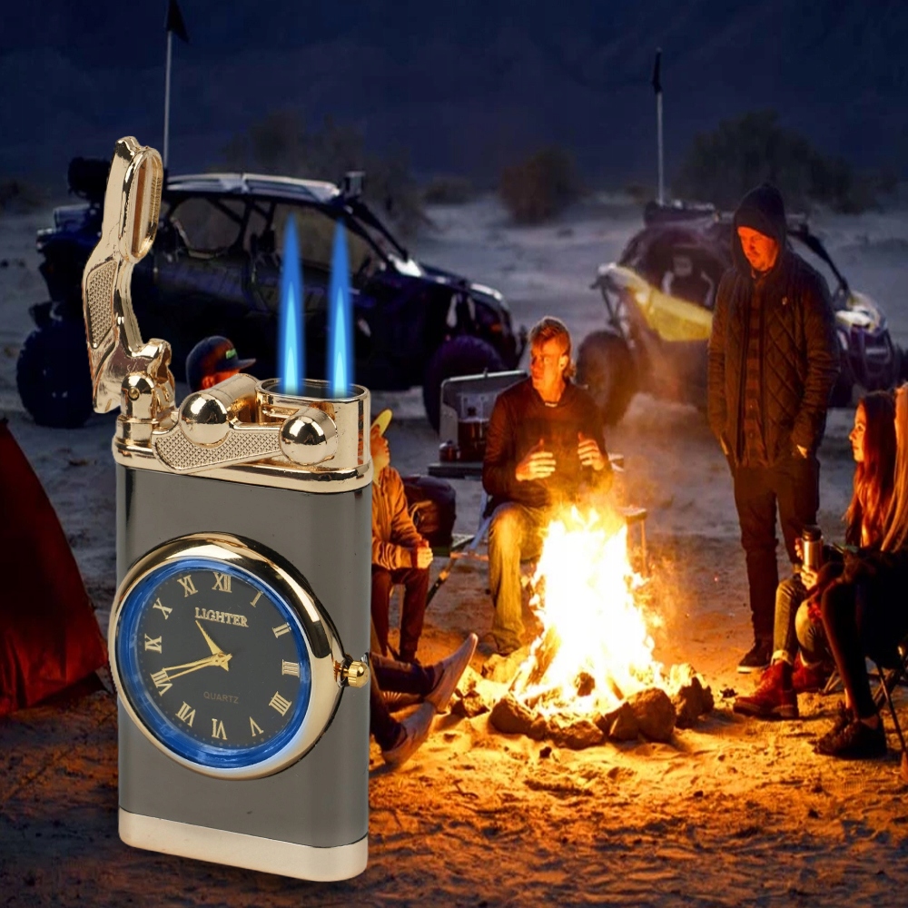 - Виготовлений із високоякісного цинкового сплаву, має елегантний вигляд. Він не тільки може розпалювати вогонь, але також має годинник для відображення часу.