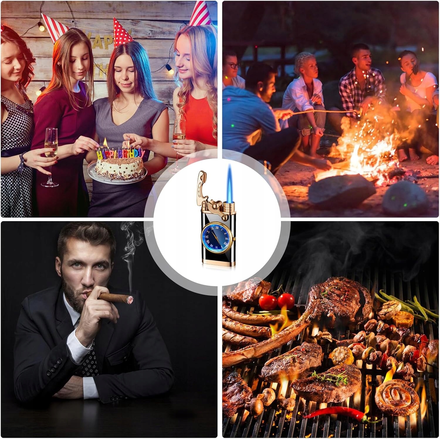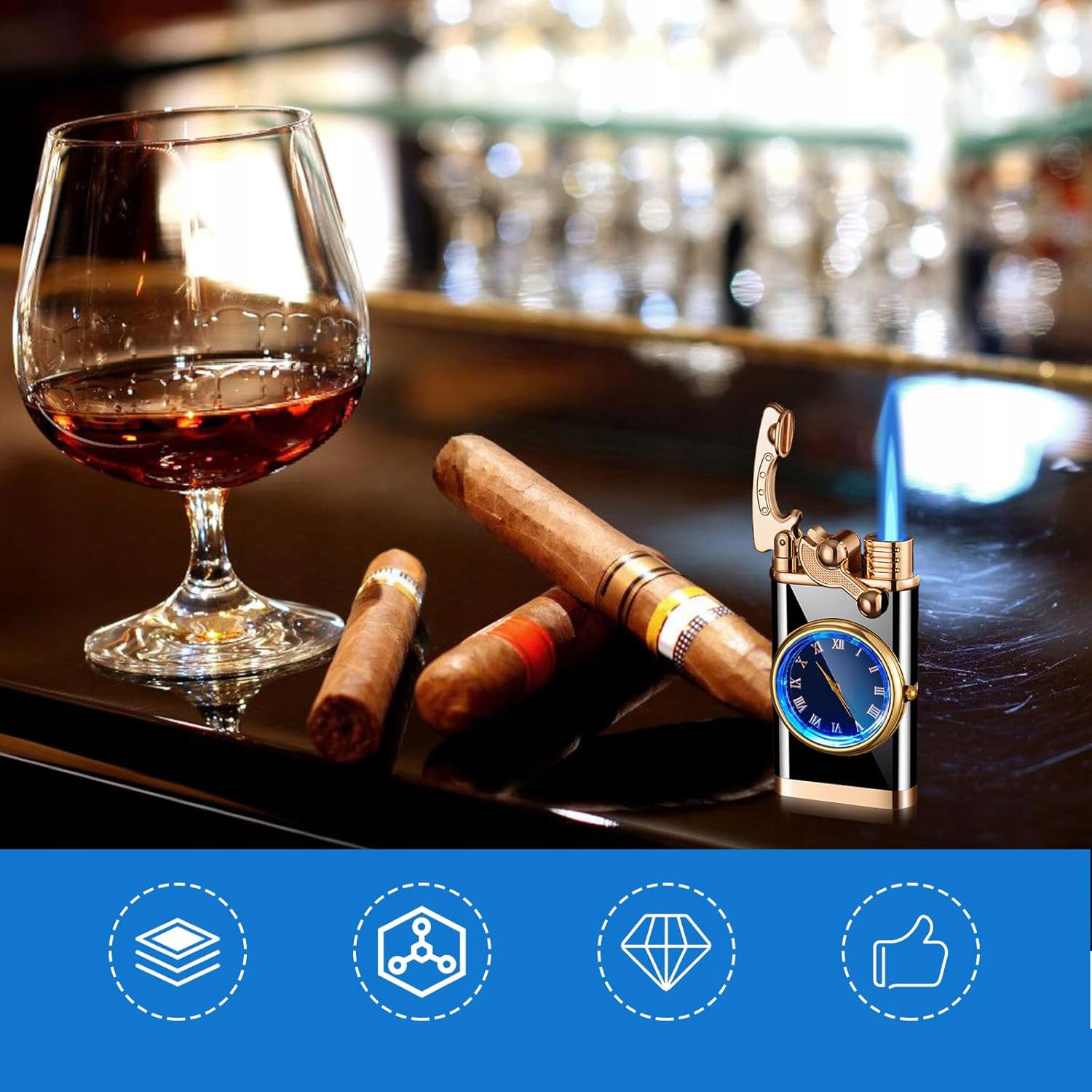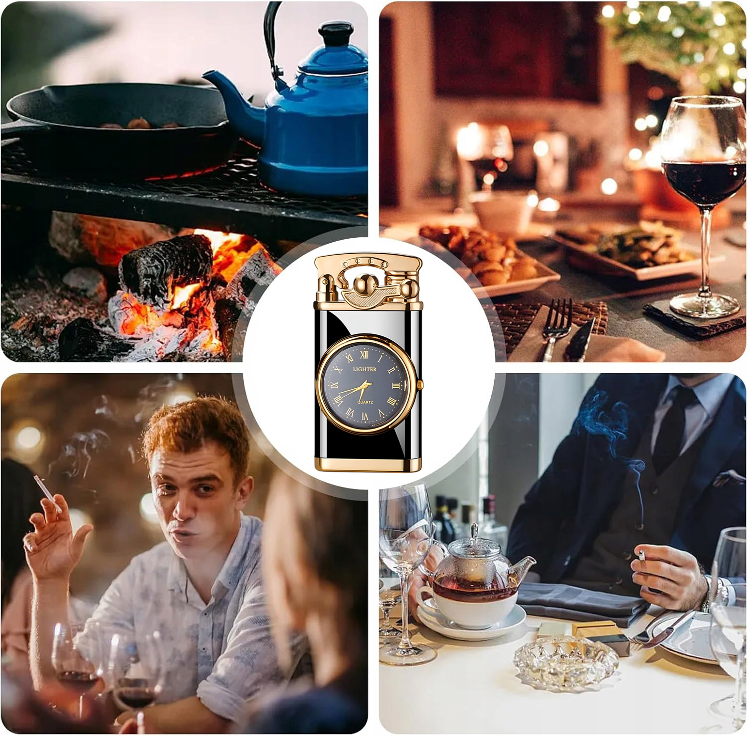 🚬🚬 [Висока якість]:Вітрозахисна запальничка, вона може не лише запалювати, але й показувати час, вона безпечна та надійна, вітрозахищена та бризозахищена конструкція запобігає згасанню запальнички під час сильного вітру, запальничка виготовлена з високоякісного цинкового сплаву з унікальним та елегантним зовнішнім виглядом.