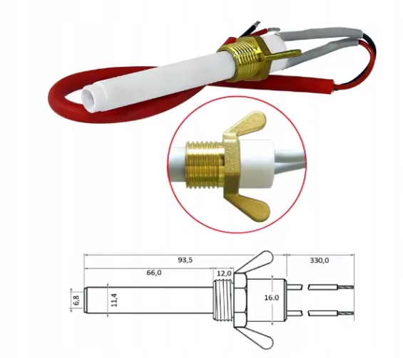 ЗАПАЛЬНИК (ТЕН) КЕРАМІЧНИЙ З РІЗЬБОЮ ВГВИНЧУВАНИЙ ДЛЯ GALMET 220W, різьба M16