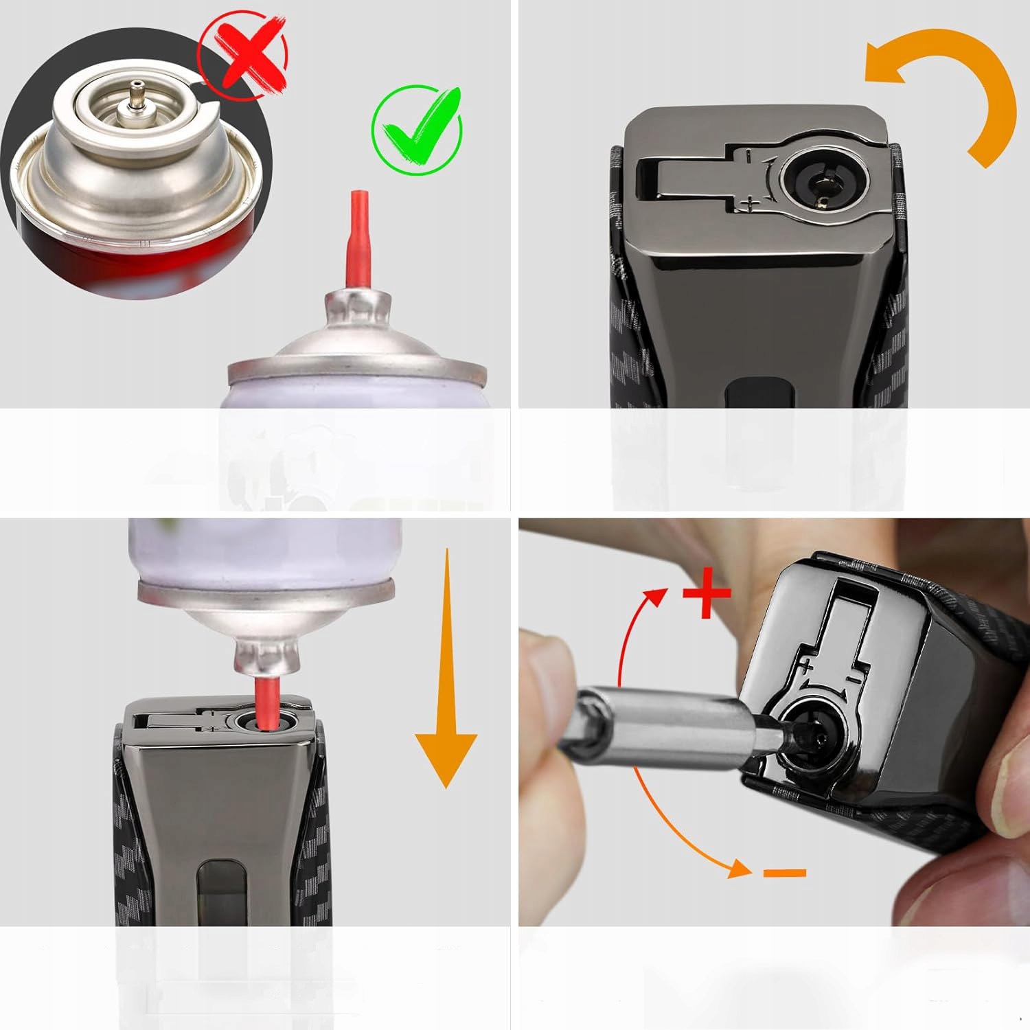 Ця вітронепроникна запальничка має універсальний заправний клапан і видиме паливне віконце, що дозволяє легко перевіряти рівень бутану під час наповнення та використання, забезпечуючи зручне нагадування та доповнення. Пряме полум’я з 4 конфорками є вітрозахисним і потужним, що дозволяє швидко та легко запалювати навіть у вітряну погоду.