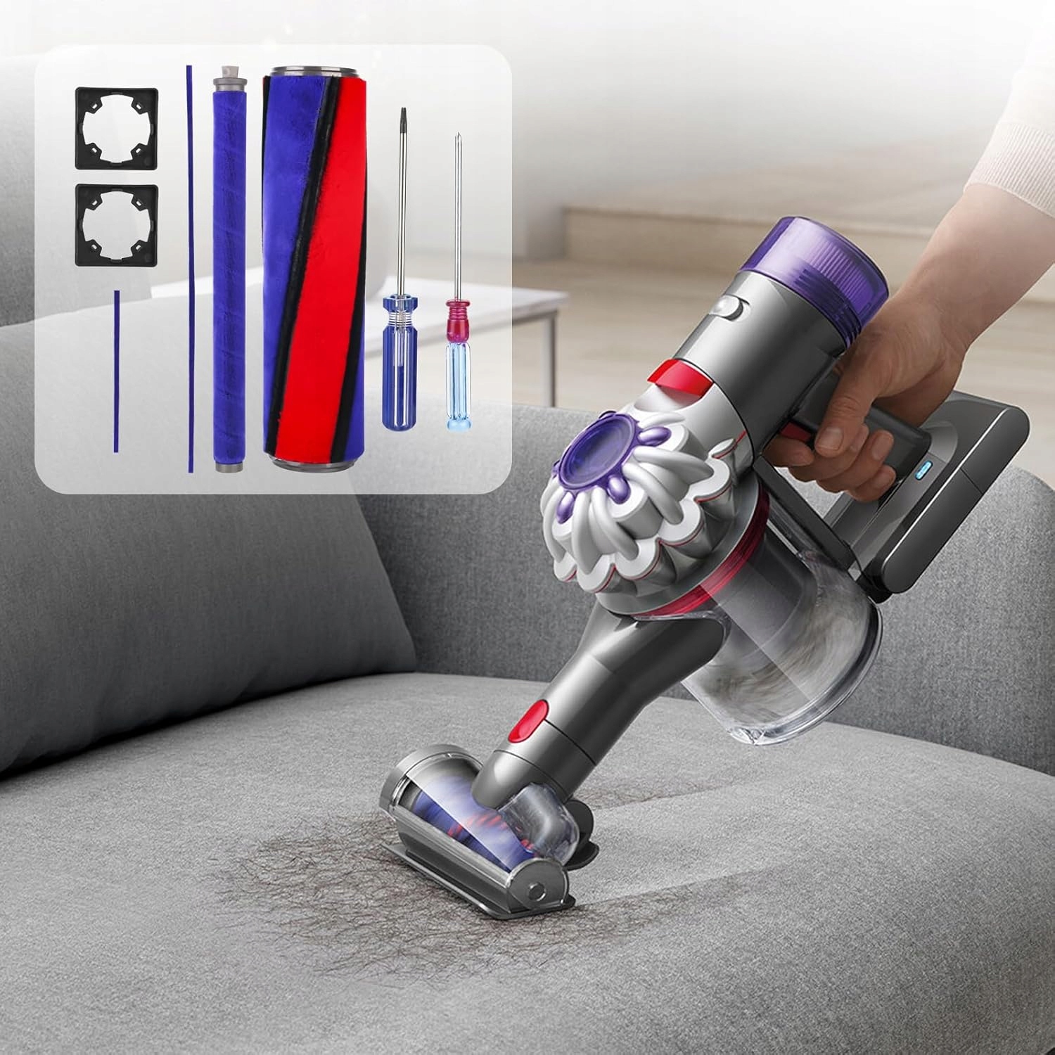 2. Сумісний із аксесуарами Dyson V6, V7, V8, V10, V11 і такими пилососами: SV11, SV10, SV12, SV13, SV27, SV14, SV17, SV15, SV22, DC58, DC59, DC62, DC74. Підходить лише для насадок Dyson.