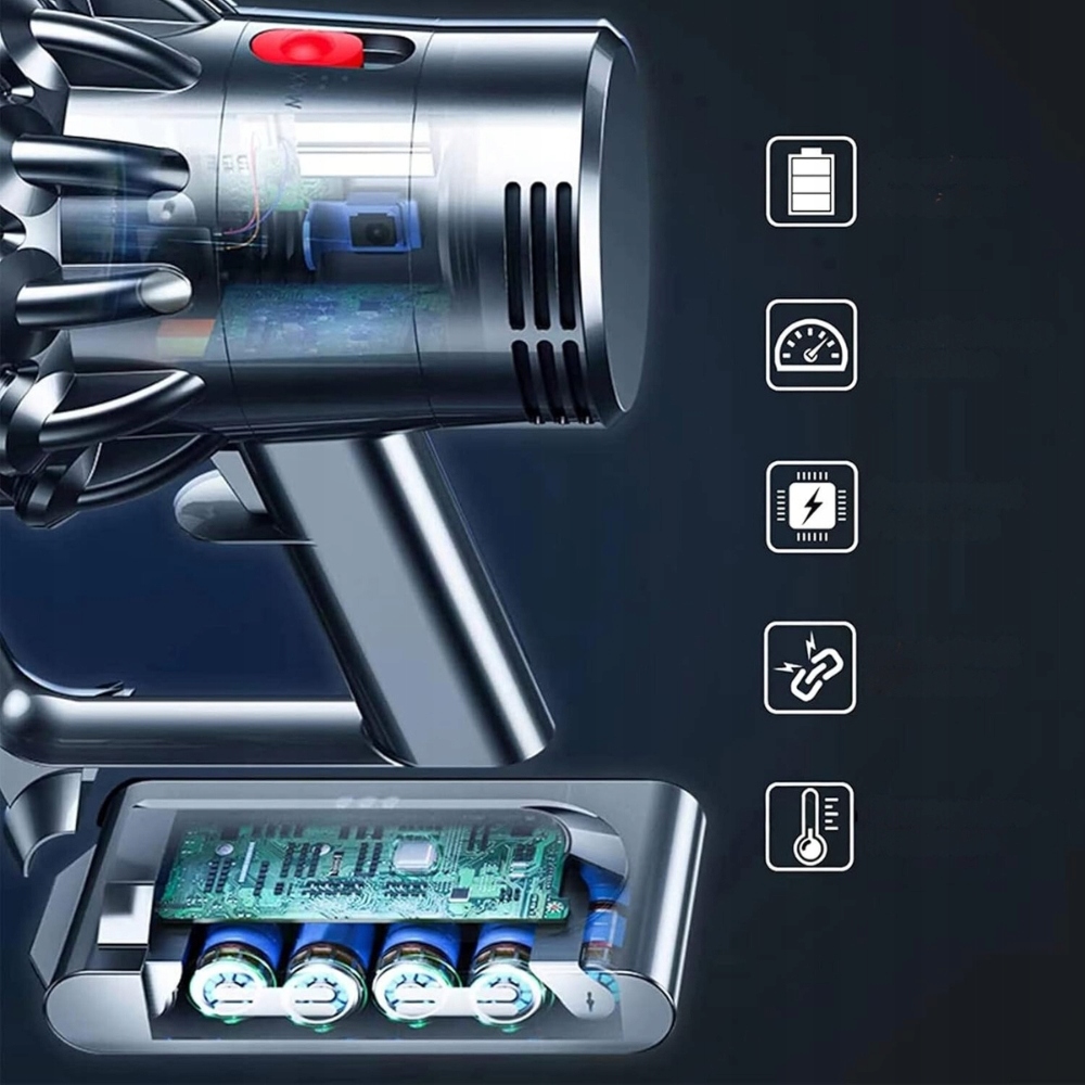 Вбудований захист схеми запобігає перегріванню, коротким замиканням, перезарядженню та перенапрузі , забезпечення безпеки використання. Акумулятор надійний, забезпечує стабільність роботи пилососа, забезпечуючи ефективність і безпеку в повсякденному використанні.