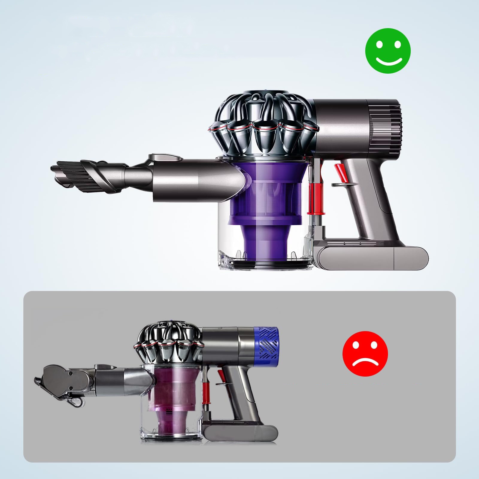 💡💡 Гарне ущільнення: наш контейнер для пилу ідеально підходить для пилососів Dyson V6 DC58, DC59, DC62 і DC74, забезпечуючи щільне ущільнення та запобігаючи витоку пилу та сміття.
