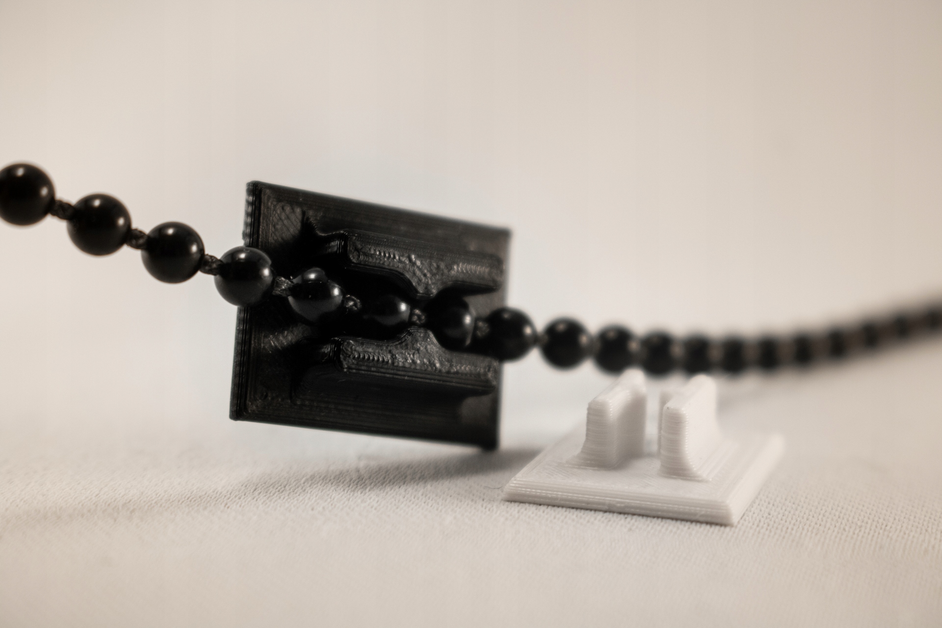 Замок для рулонних штор можна використовувати в рулонних шторах з ниткою бісеру. Він запобігає ковзанню рулонної штори і дозволяє встановити рулонні штори на будь-якій висоті.