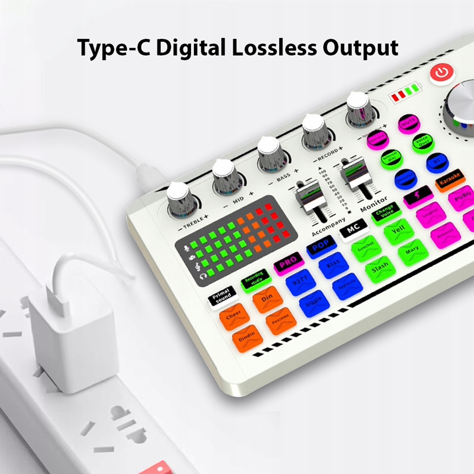 - 【16 Спеціальні ефекти та звуки атмосфери】: Ця звукова карта пропонує 16 різних звуків спецефектів та атмосфери, що дозволяє створити унікальний та захоплюючий звуковий досвід для одержувачів. Незалежно від того, чи надсилаєте ви живу трансляцію в прямому ефірі, запису чи просто весело, ці ефекти додають професійного контакту з вашим звучанням.