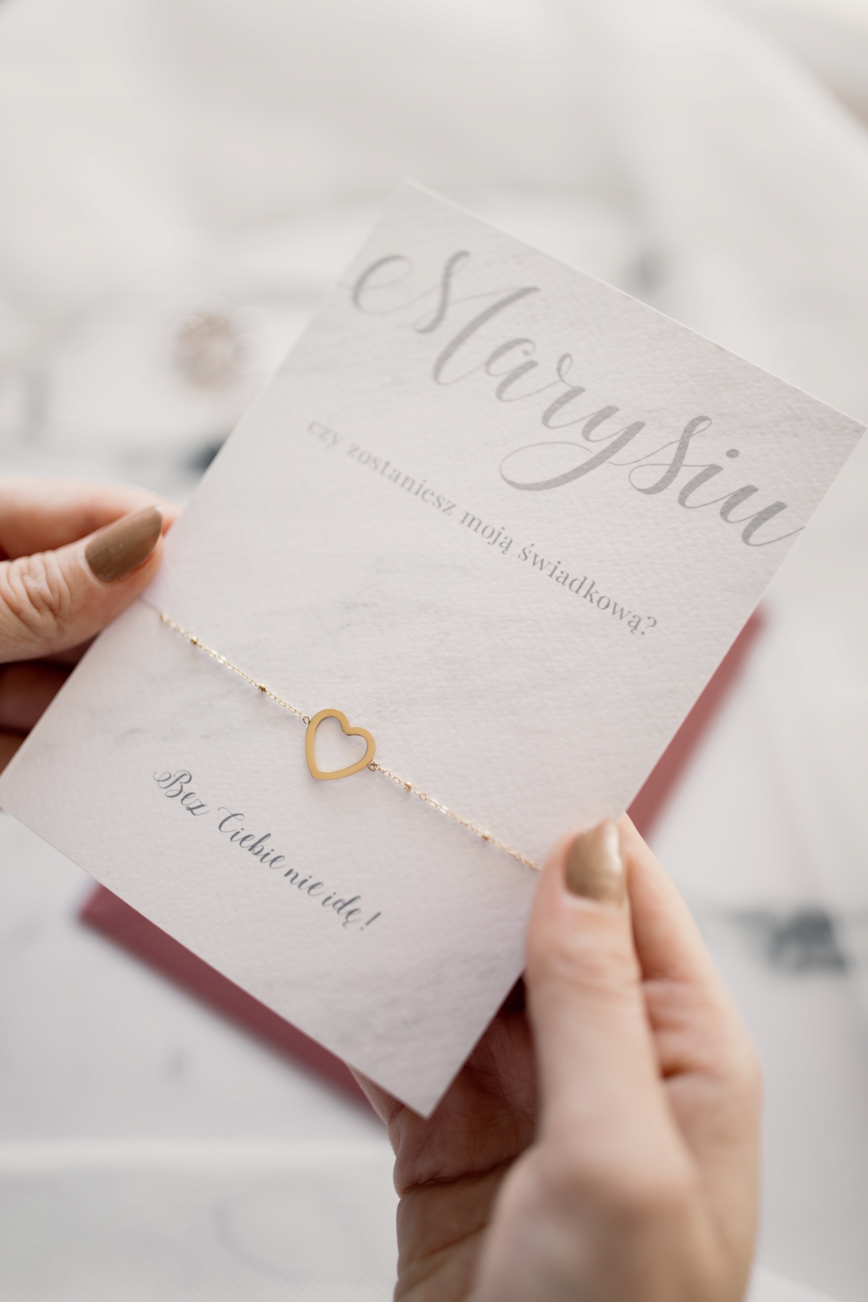 Мармурова картка з проханням про свідчення в комплекті з браслетом.