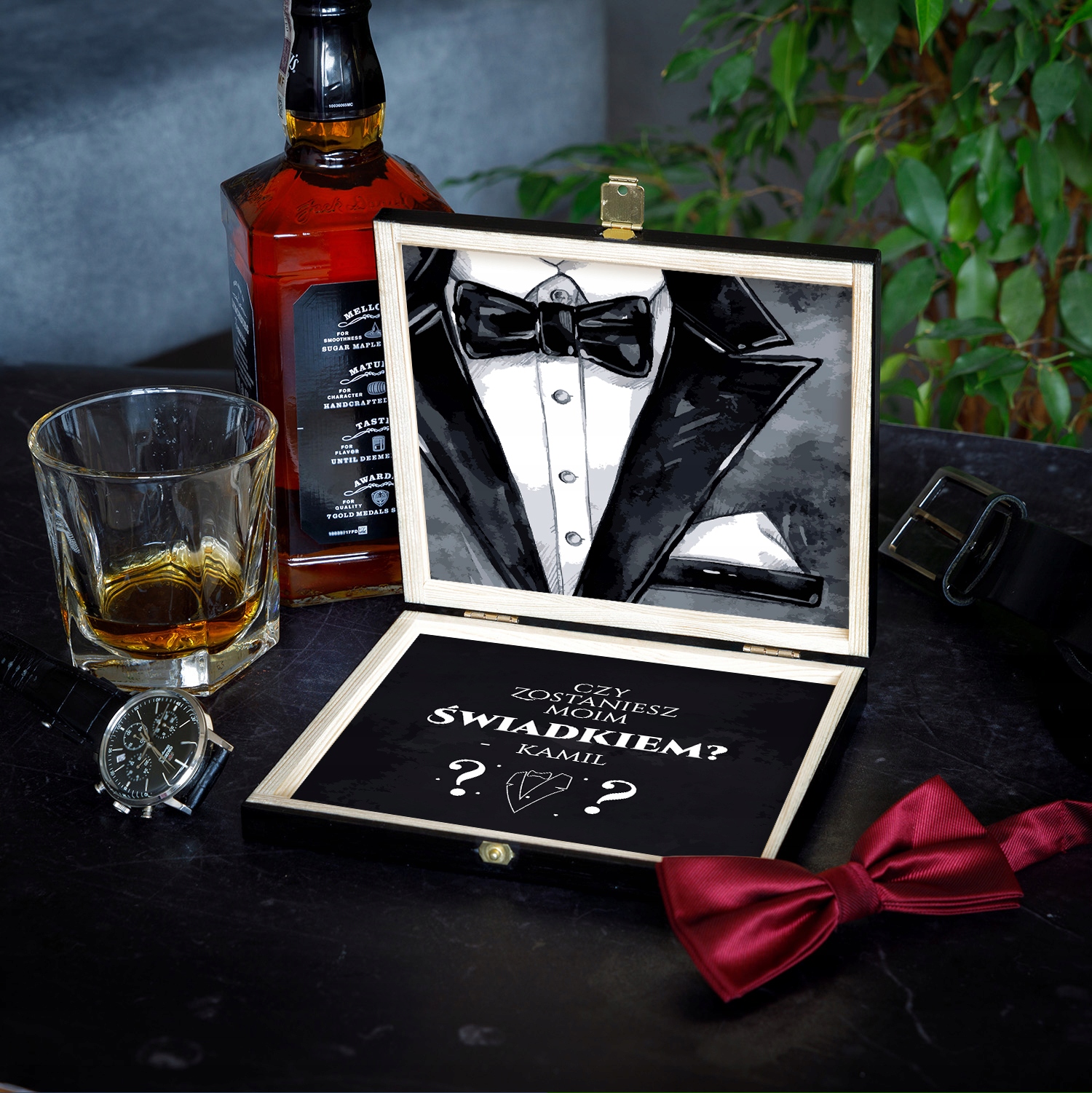 Хочете попросити особливого чоловіка стати вашим свідком? Зробіть це за допомогою подарунка у вигляді гравірованої коробки з кольоровою тематичною наклейкою.
