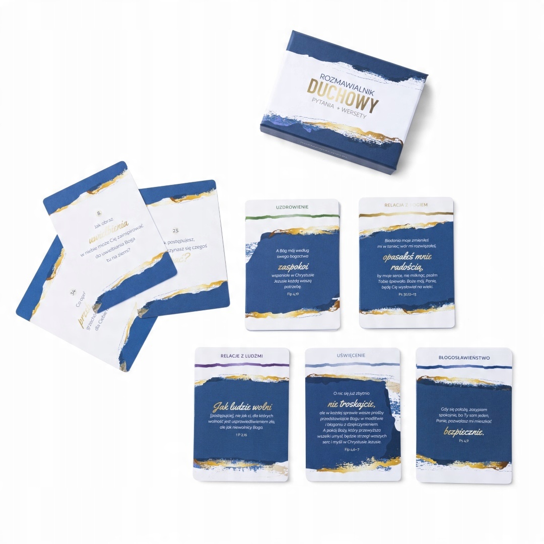 SPIRITUAL INTERVIEWER ідеально підходить для спільноти чи групи Християнські друзі. Це видання не лише про запитання – на іншій стороні карток ви знайдете 40 БІБЛІЙНИХ Віршів про стосунки з Богом та іншими людьми, благословення, освячення та зцілення. Вони можуть допомогти вам відповісти на запитання, а також бути підбадьоренням, коли ви використовуєте їх самостійно, щоб зосередитися на Божих істинах або запам’ятати вірші. Вірші взяті з Біблії Тисячоліття. Вірші, що додаються до карток, також дозволяють вам самостійно використовувати картки різними способами, наприклад: Помедитуйте на випадково вибраний вірш за ранковою кавою. Завершіть день, прочитавши довільний вірш перед сном. Використовуйте картки як картки для запам’ятовування віршів. Виберіть запитання та прочитайте його. Відповідайте на нього Богові в молитві, розмірковуючи над ним, промовляючи вголос або записуючи в блокнот. Заплануйте весь день або його частину як час, відведений для Бога, і розмірковуйте над кількома запитаннями по одному, перетворюючи свої відповіді на молитву. Прочитайте контекст віршів, які вас цікавлять у Біблії. Фрагменти Святого Письма поділено на 5 категорій: Стосунки з Богом / Стосунки з людьми / Благословення / Освячення / Зцілення Це полегшить пошук відповідного вірша до ситуації 1. Якщо ви хочете прославити Бога, прочитайте вголос вірші про те, ким Він є як. 2. Коли вам важко виявляти любов до інших людей, підбадьорюйтеся Божим керівництвом. 3. Якщо ви хочете когось благословити, виберіть вірш із надихаючим посланням для нього. 4. Коли вам потрібно попрацювати над своїм характером або отримати натхнення діяти, використовуйте категорію освячення. 5. Коли хвороба атакує вас або близької людини, сповідайте вірші про зцілення. Слово Боже ЖИВЕ, тому, можливо, ви можете використовувати ці вірші в інших випадках :) Додаткова інформація Розміри коробки: 10,5 см x 7,5 см x 2 см Тверда картонна коробка 40 повнокольорових карток Приємна м’яка обробка