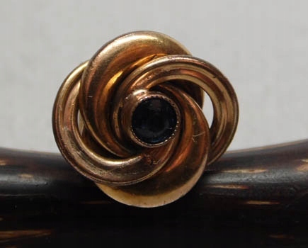 плетена прикраса для потужності ланцюгового каменю. Позолочений орнамент - покритий золотом. Діаметр 1,22 див. Отвір для девізу, ланцюга або браслета 3,9 х 6,5 мм. Камінь, схожий на 3,1 мм сапфіру. Ювелірні вироби, виготовлені близько 1910 - 1930 рр.