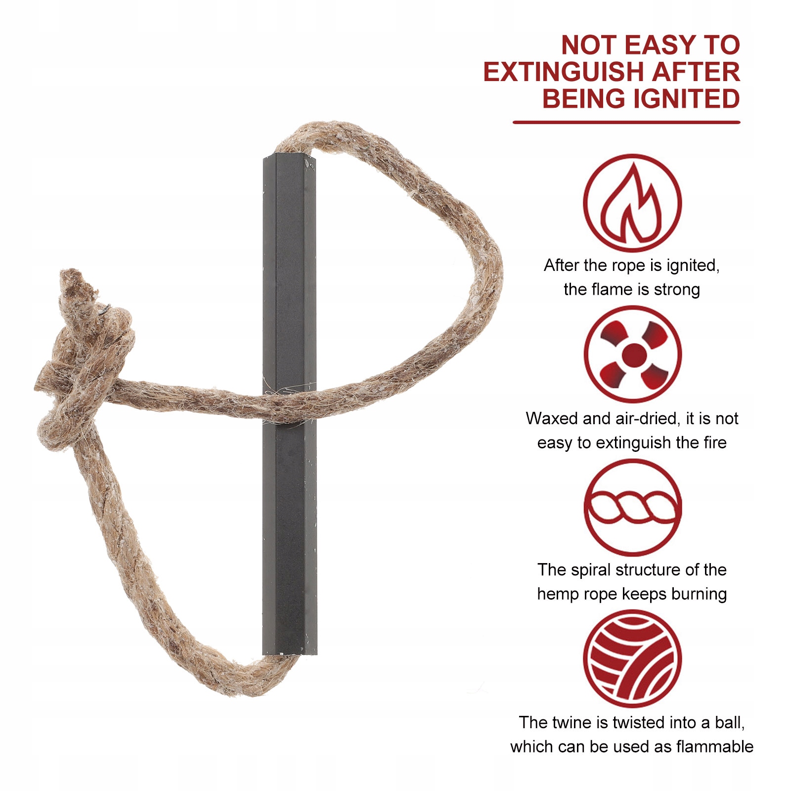 ✅Якщо ви шукаєте розпалювачі вогню, ви не можете пропустити наші шнурки для ґнотів для виживання. Виготовлені з мотузки та алюмінієвого сплаву, вони якісні та довговічні. Канат, що підтримує горіння. Тривалість горіння довша.