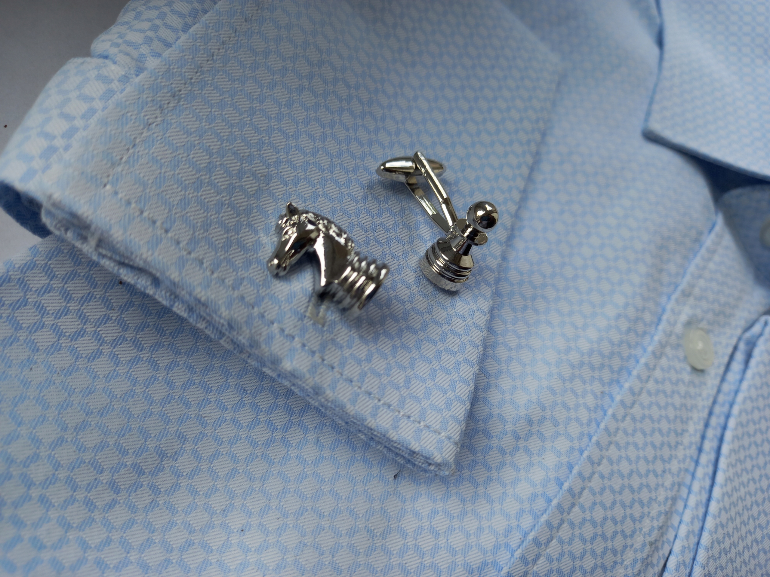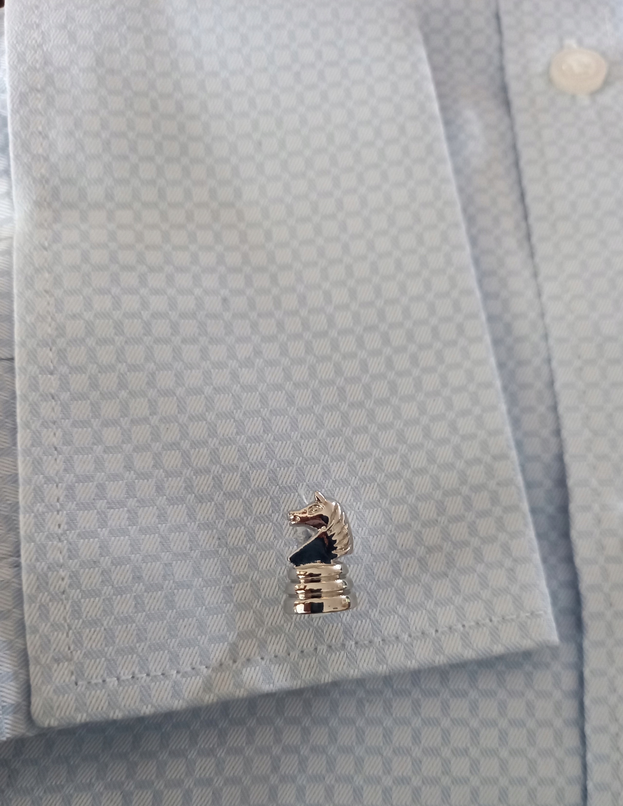 Шикарні срібні, дуже красиві та оригінальні запонки для сорочки від Exciting. Запонки виготовлені зі сплавів дорогоцінних металів у формі шахових фігур і упаковані в красиву коробочку Exciting. Дуже елегантно, ексклюзивно і цікаво. Запонки, зроблені та упаковані таким чином, є ідеальною ідеєю для подарунка.