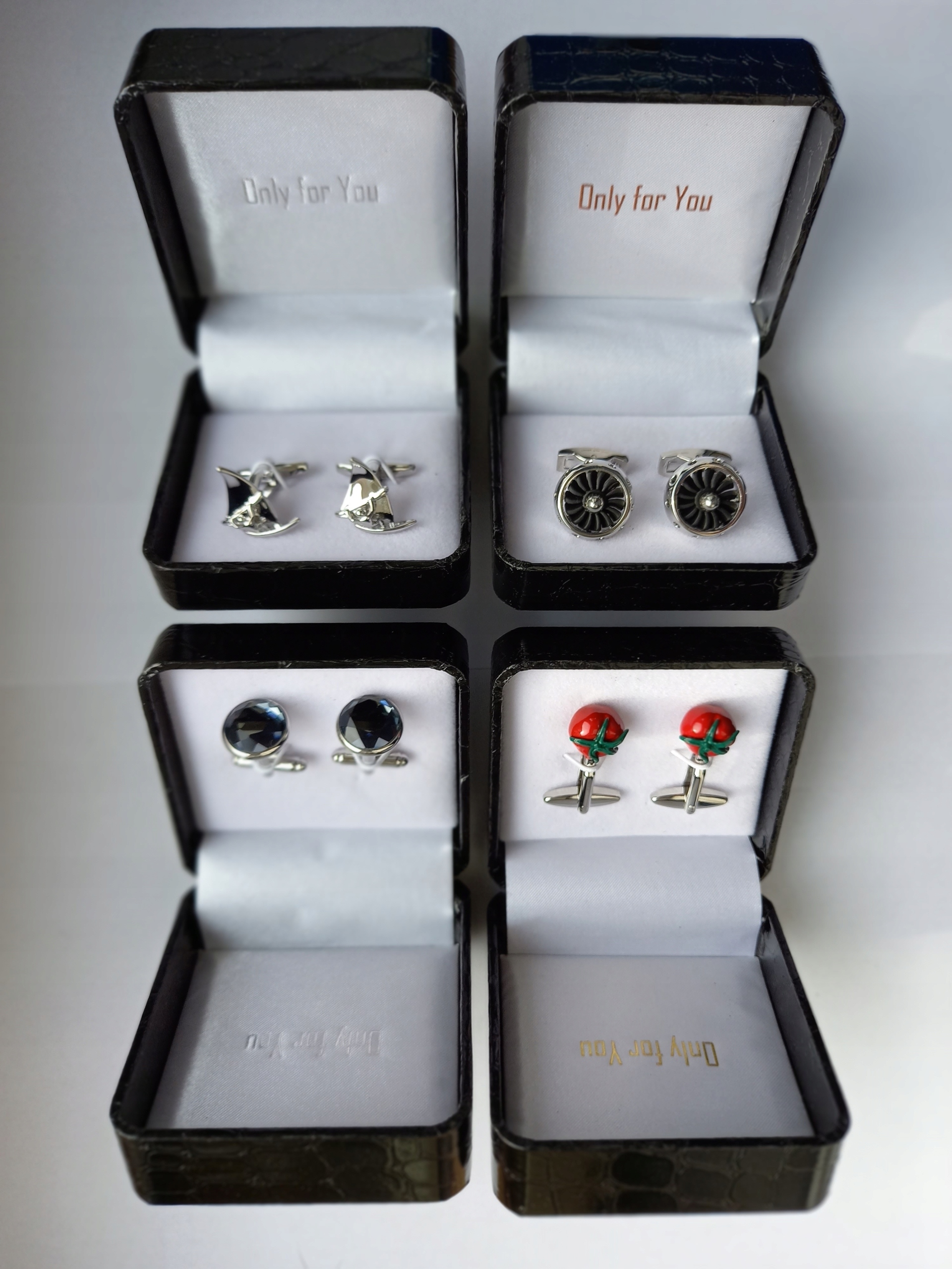 - Набір запонок упаковано в кольорову коробку для запонок.