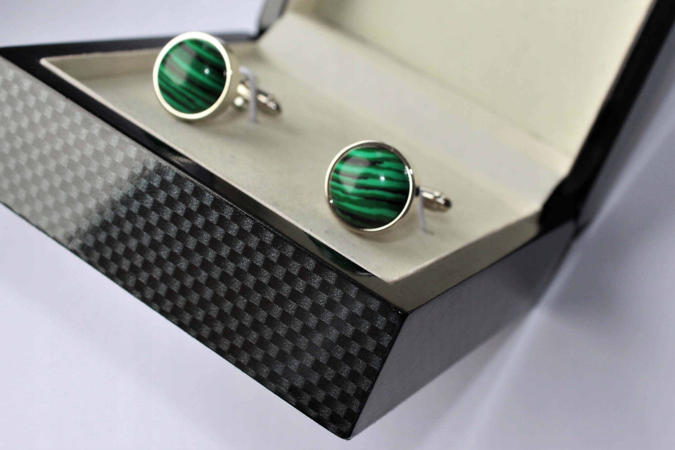 - Набір запонок упакований в ексклюзивний футляр із малюнком зі зміїної шкіри, розміром приблизно 7 x 7 x 4 см. < /li>