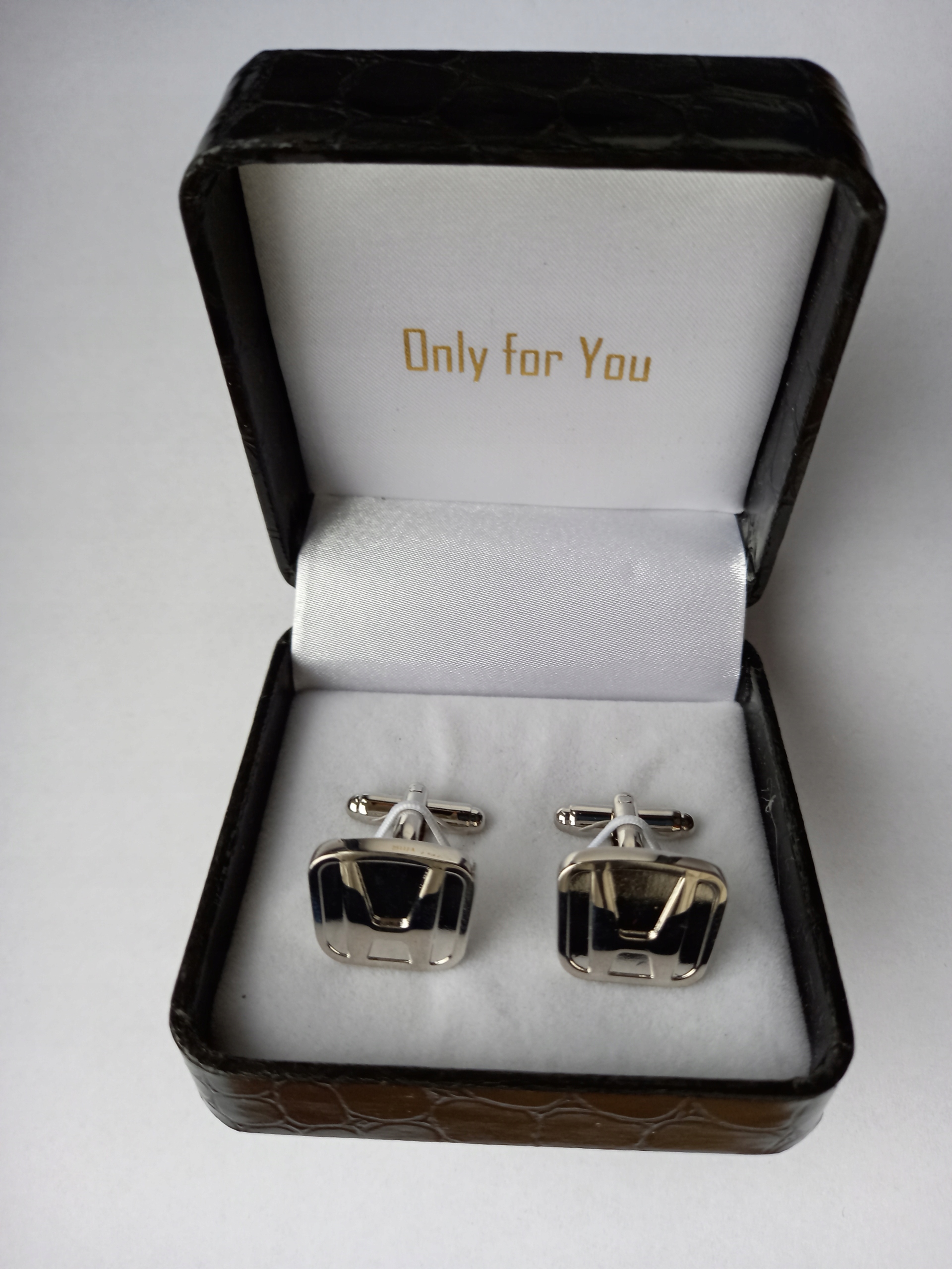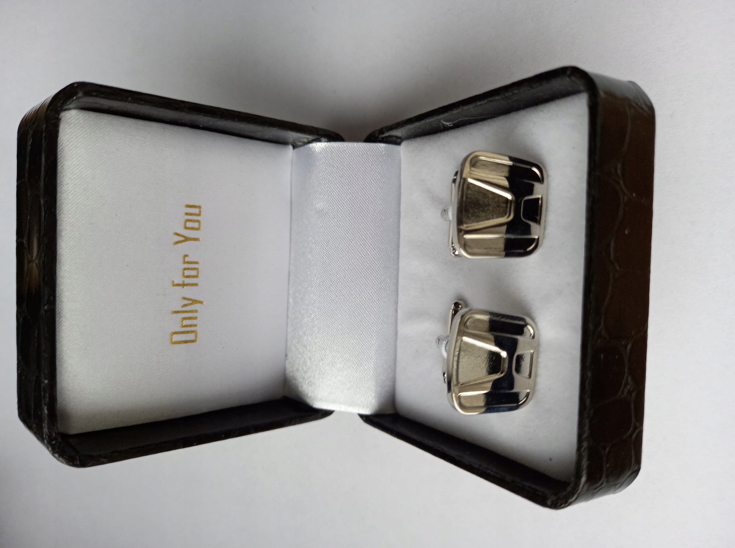 Оригінальний набір запонок для сорочки від Exciting з ексклюзивної лімітованої серії Only for You. Запонки виготовлені з дорогоцінного металу срібла. Запонки упаковані в ексклюзивний чорний чохол з малюнком зміїної шкіри. Кожному комплекту запонок із цієї серії присвоюється унікальний номер, розміщений на сертифікаті оригінальності з голограмою на дні коробки.