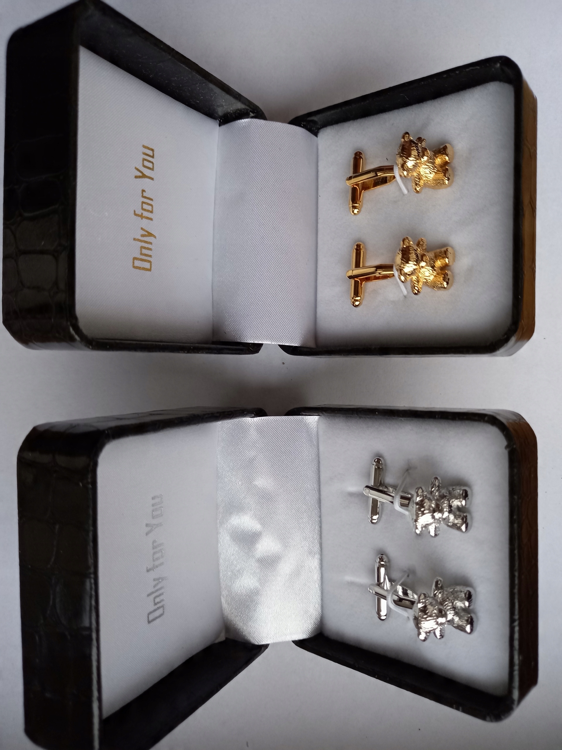 Набір сорочкових запонок від Exciting. Запонки виготовлені з дорогоцінного металу. Набір з двох запонок упакований в картонну коробку чорного або синього кольору. За додаткову плату ми можемо упакувати запонки в ексклюзивний чохол зі зміїним малюнком, зображеним на наступних фото.