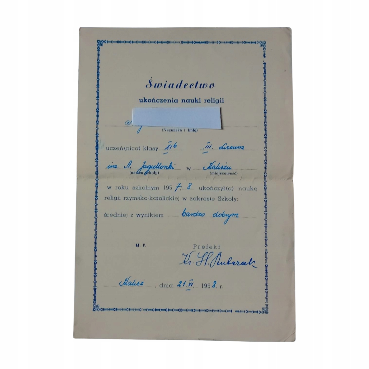 Заповніть сертифікат. релігієзнавства, середня школа Анна Ягеллонка Каліш, 1958 р