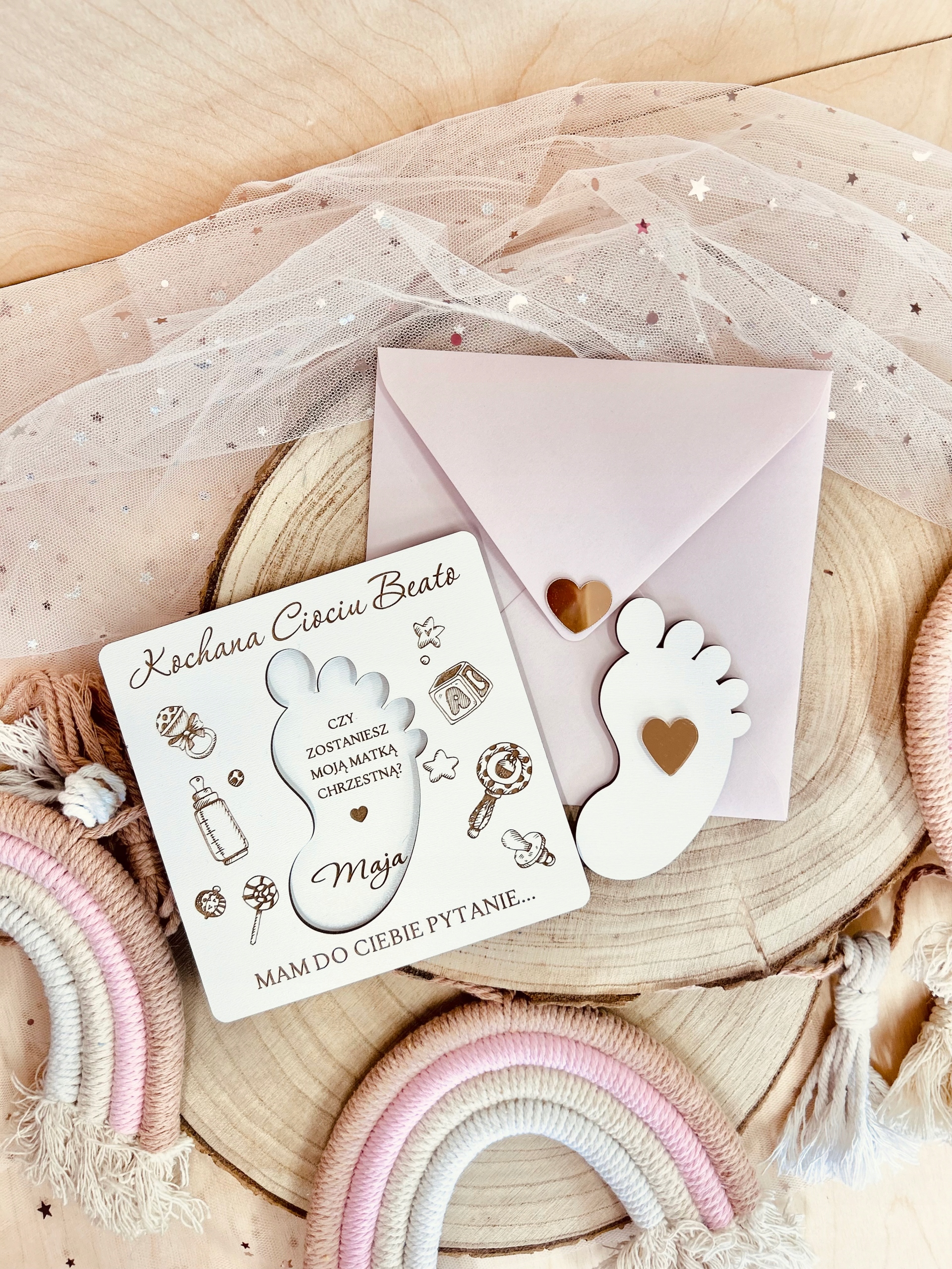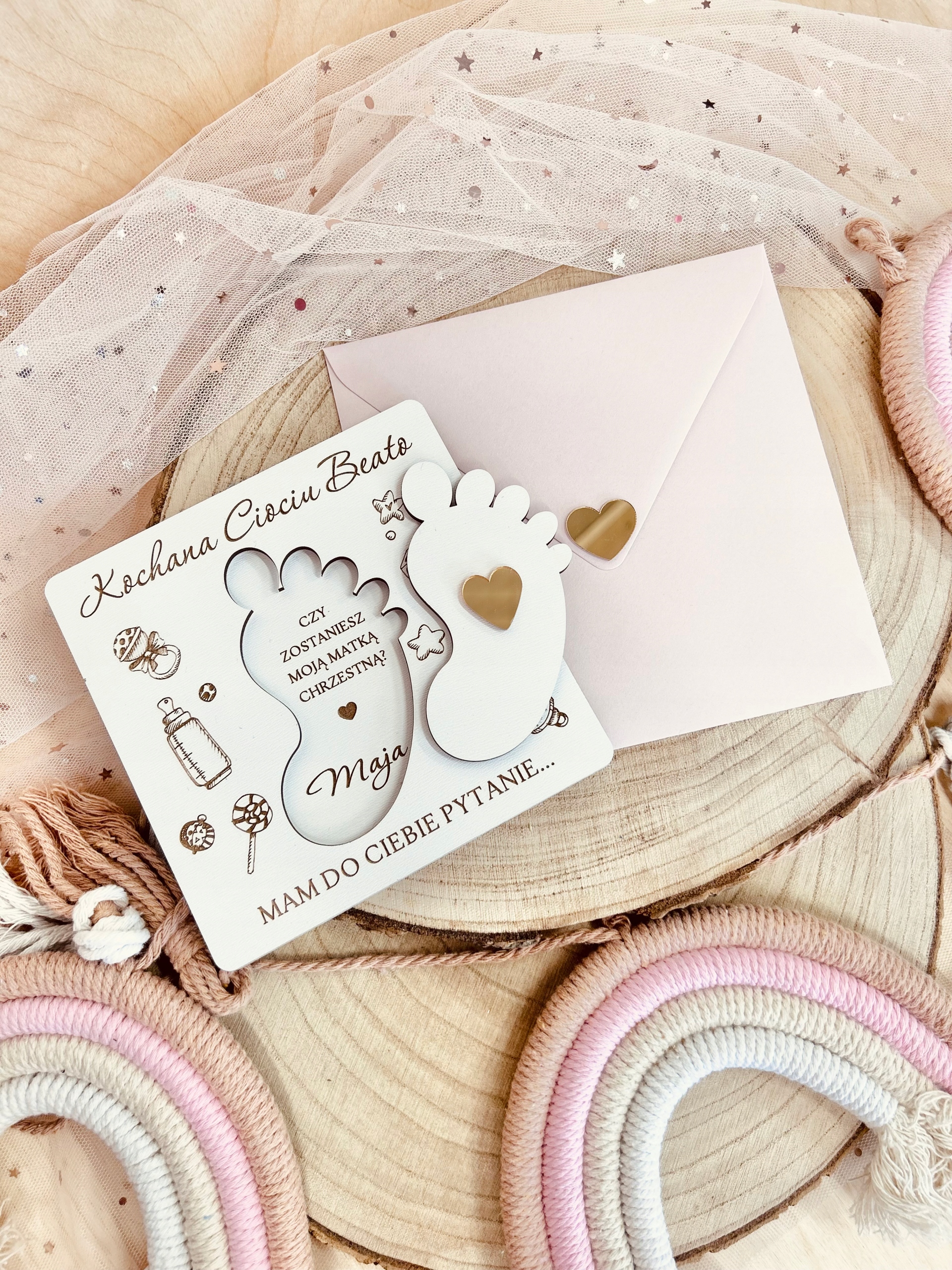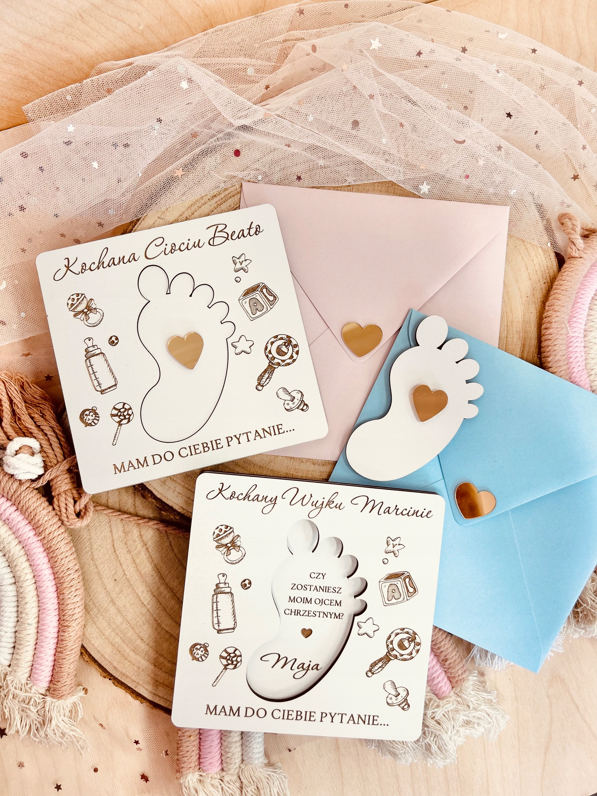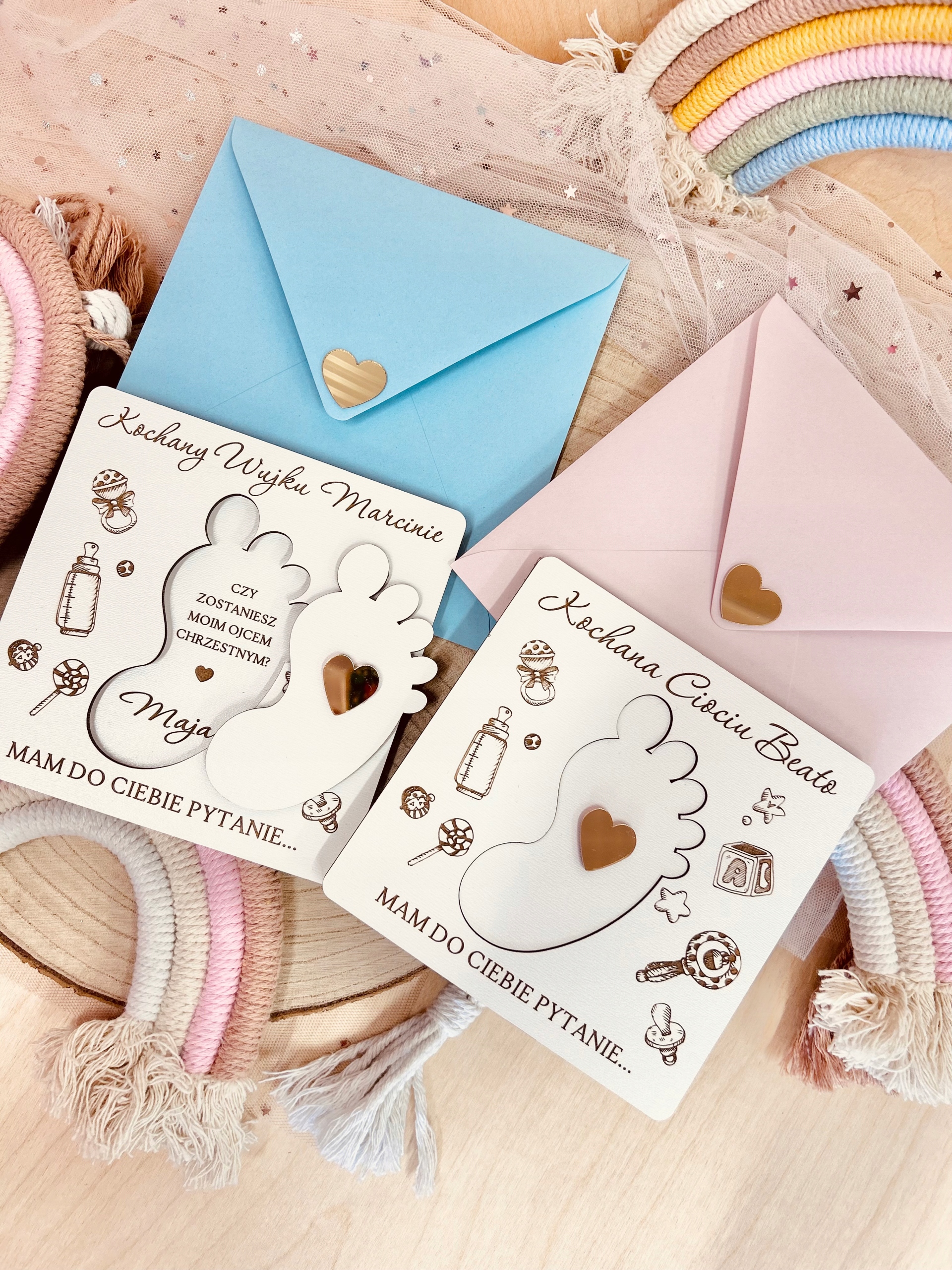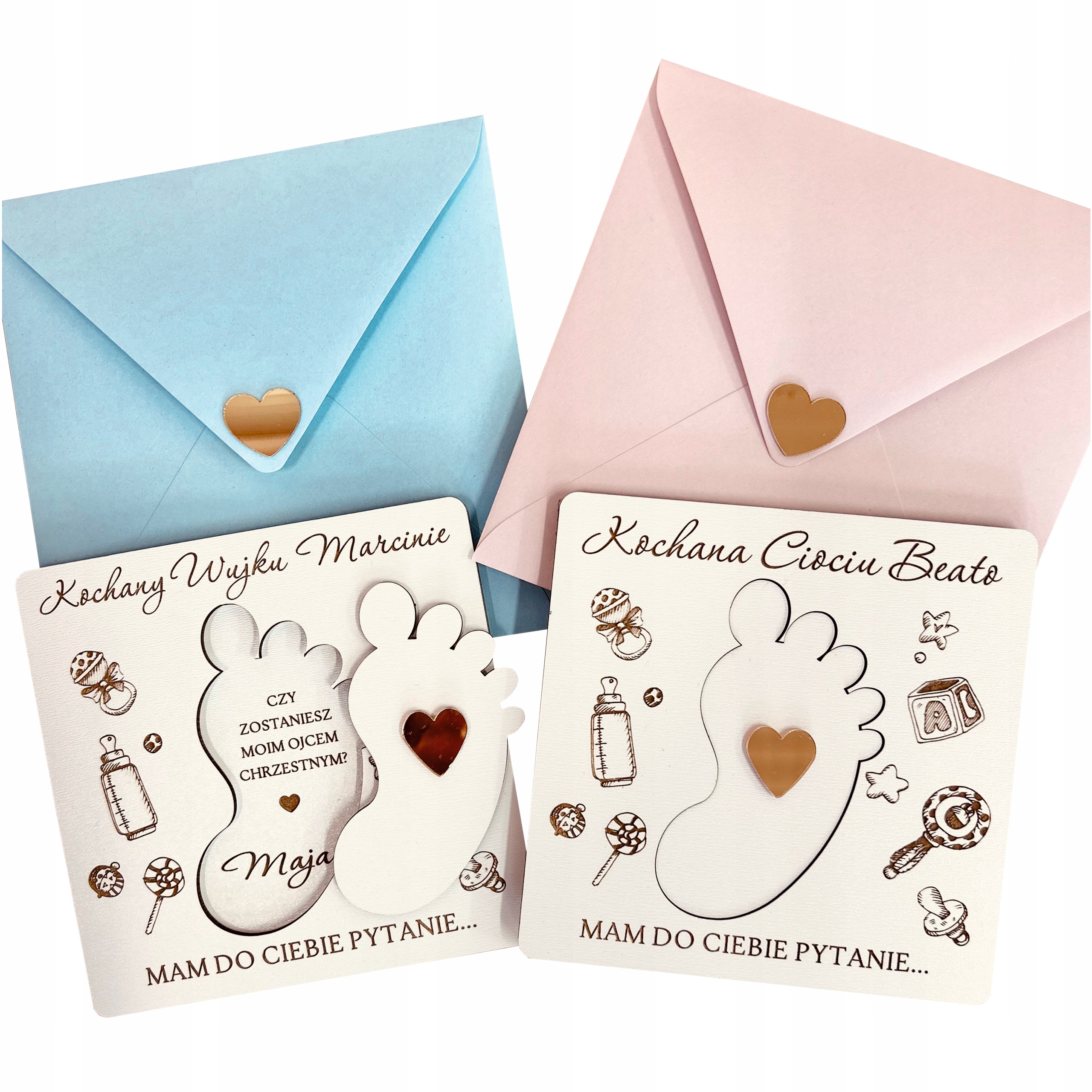 ЗАПРОШЕННЯ 2 ШТ. ПРОХАННЯ НА ХРЕЩЕННЯ БУТИ ХРЕСНИКОМ + КОНВЕРТ