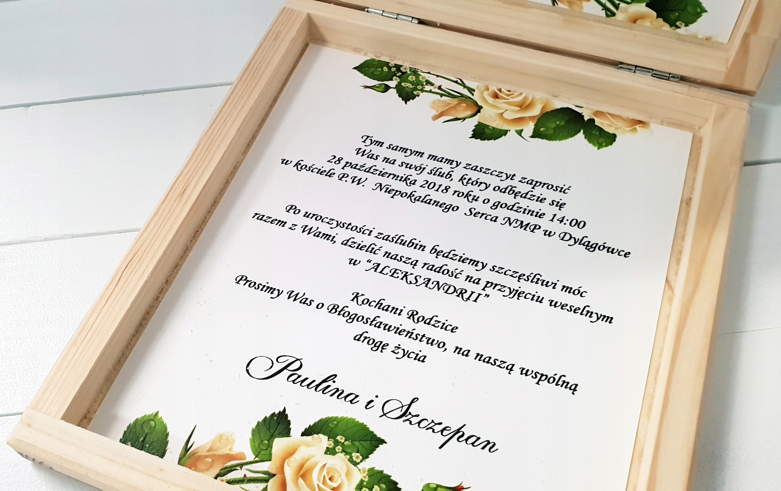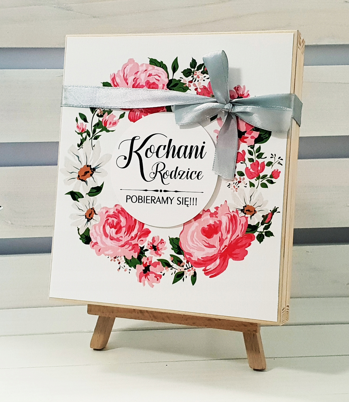- 3D коло у верхній частині коробки (Шановні батьки, Ми одружуємося, Запрошення, Шановні бабусі та дідусі, Шановний свідок, Шановний свідок)
