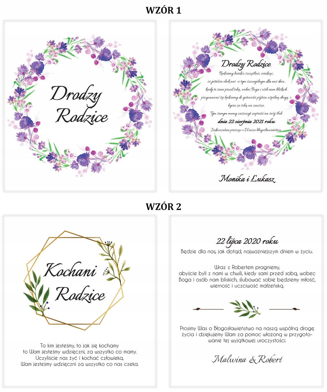 Імена нареченої та нареченого: наприклад, Monika та Paweł