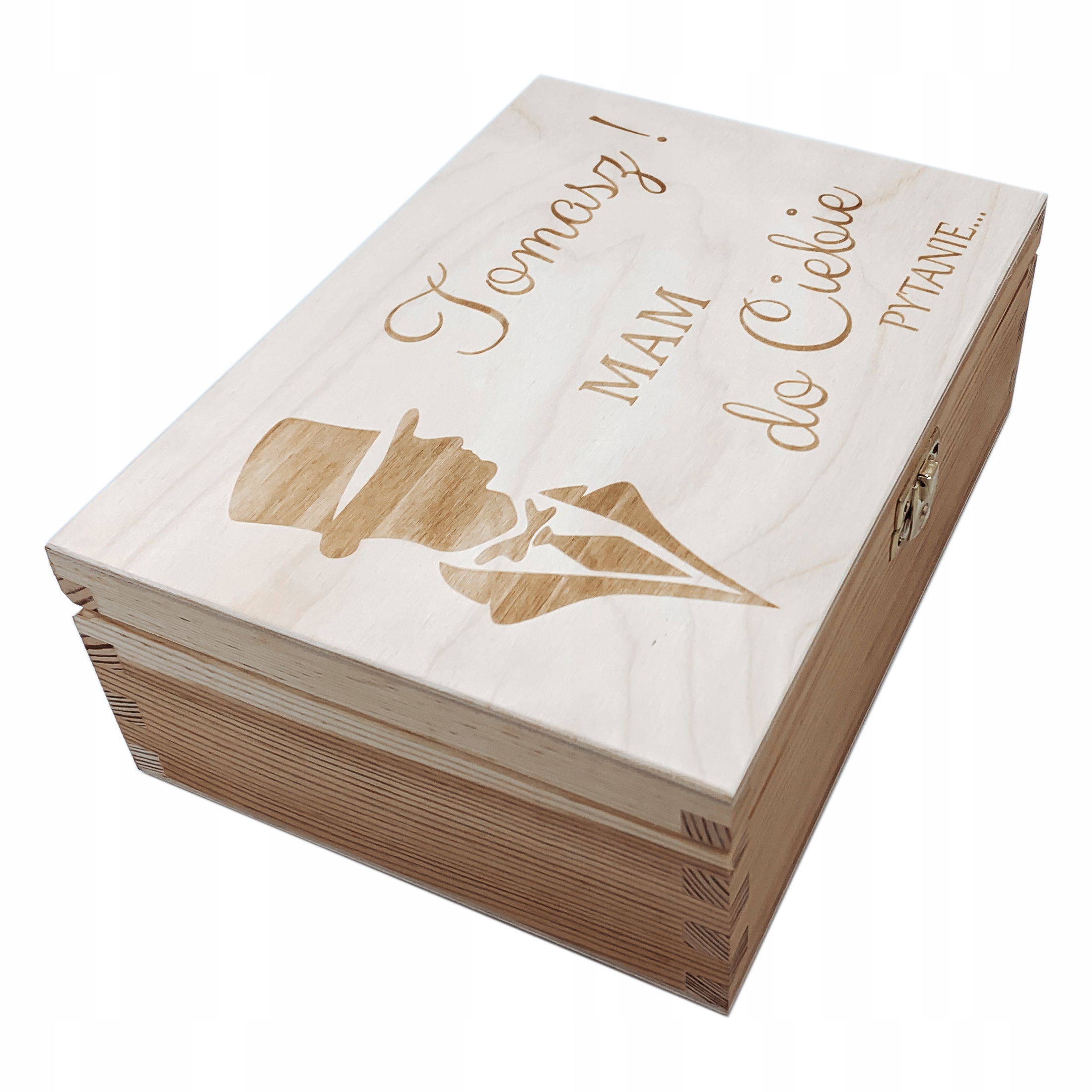 На зовнішній стороні коробки вигравірувано ім'я майбутнього свідка та текст: «У МЕНЕ ДО ВАС Є ЗАПИТАННЯ...»