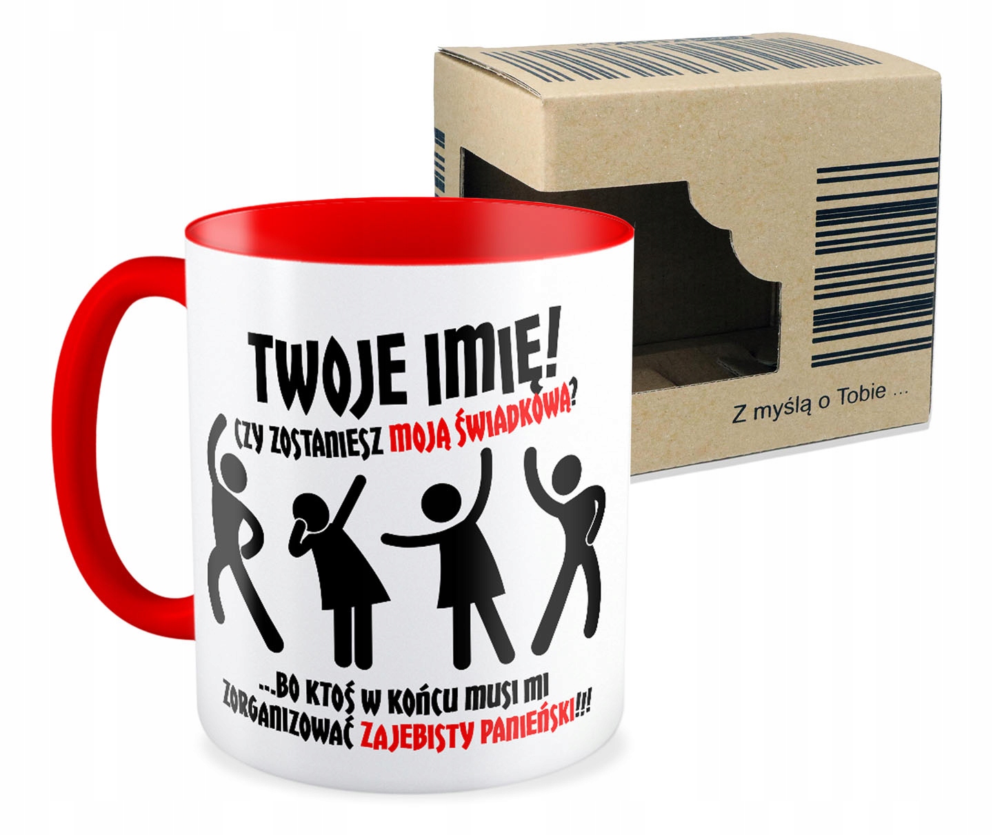 Кожна чашка упакована в коробку. Але не так, як у більшості продавців на Allegro, лише звичайна та біла. Декоративні коробки в стилі «еко» надаємо без доплати з написом «З думкою про вас...»