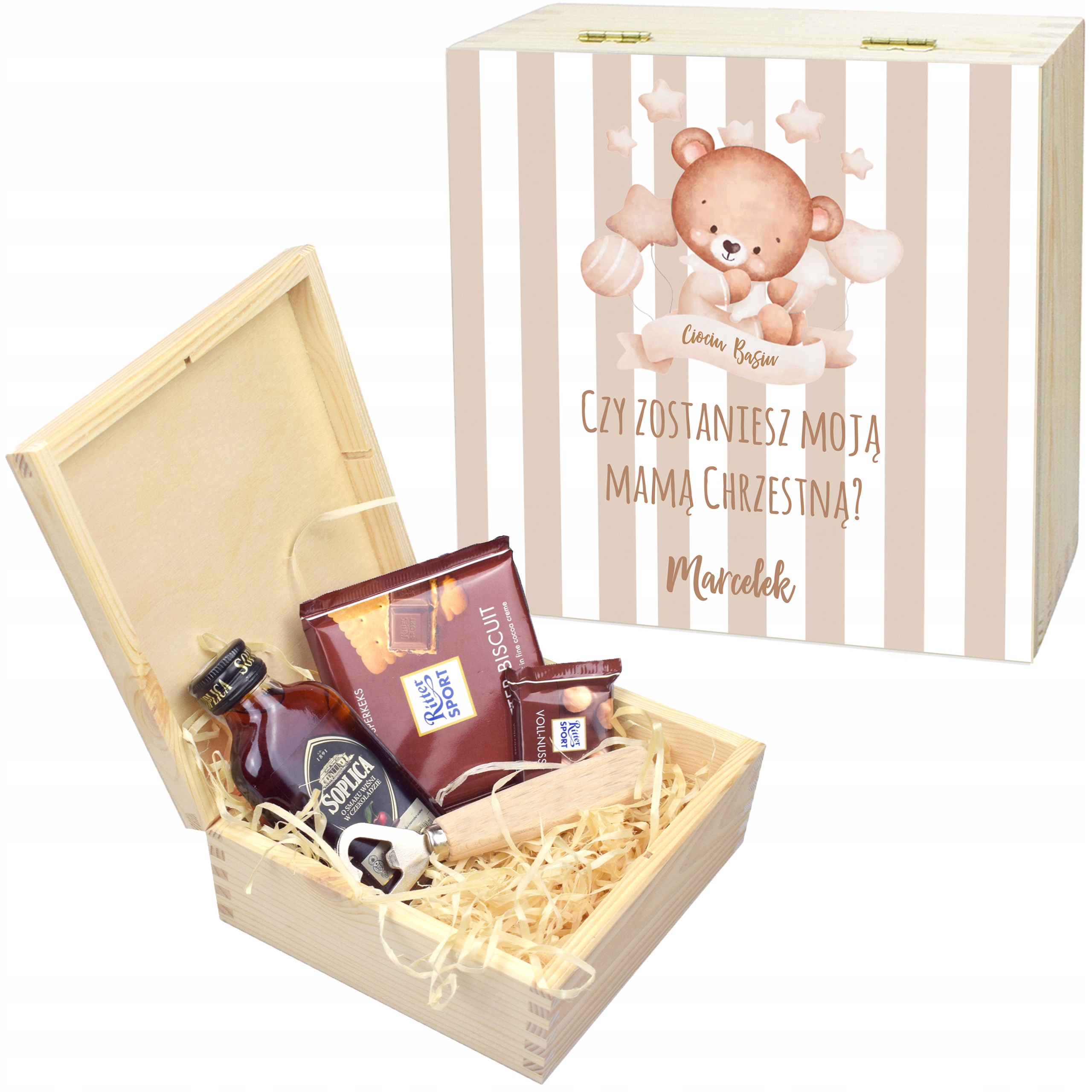 Скринька — незвичайна ідея, коли ми хочемо поставити дуже важливе запитання. Друк на ньому - не просте прохання. Такий подарунок підкреслює важливість події і ту роль, яку хрещені будуть відігравати для нашої дитини.