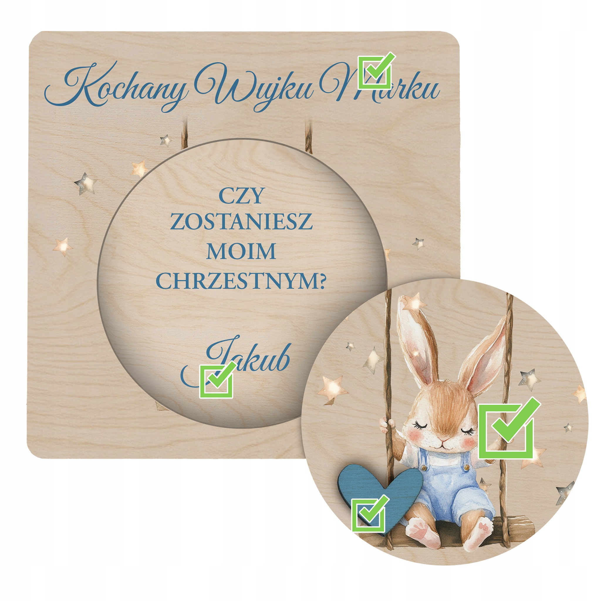 - дерев'яні запрошення для хрещених батьків