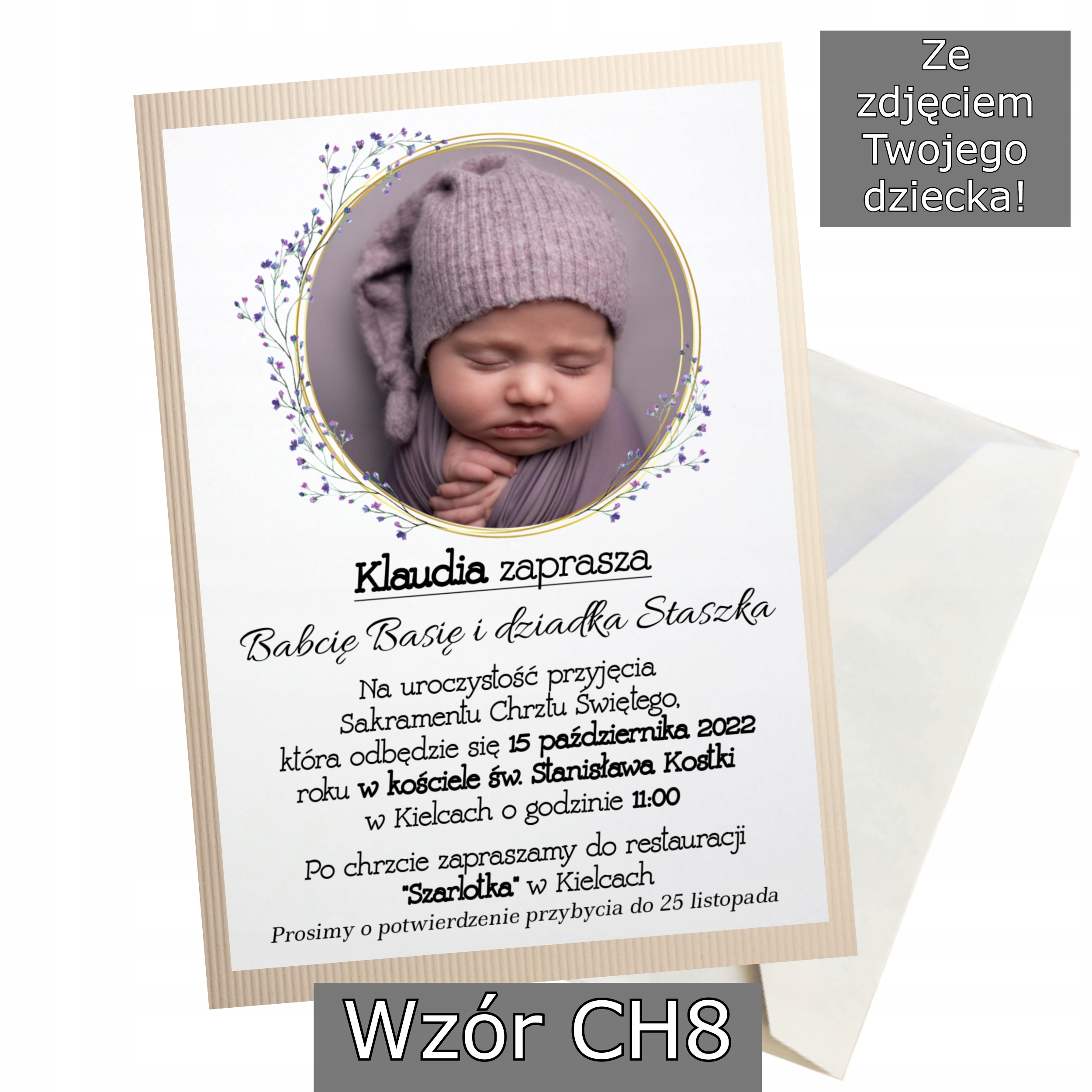 - Імена дітей ( якщо вибрано. Якщо у вас є зразок із фотографією, будь ласка, надішліть фотографію вашої дитини для запрошення в приватне повідомлення на Allegro)