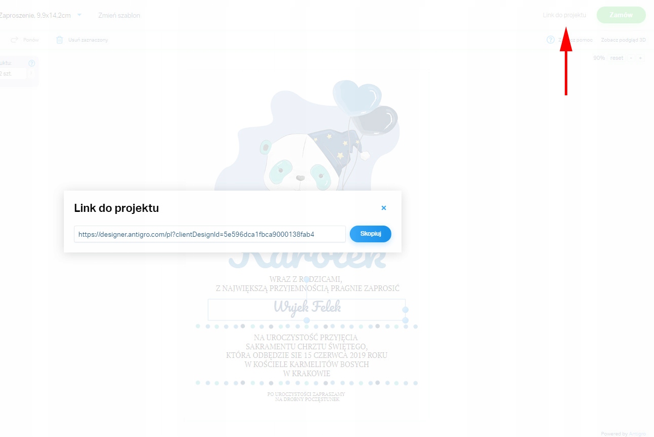 Ви хочете, щоб хтось із ваших близьких побачив створені вами дизайни, перш ніж придбати їх? Скористайтеся опцією «Посилання на проект» і скопіюйте отриману адресу сайту.