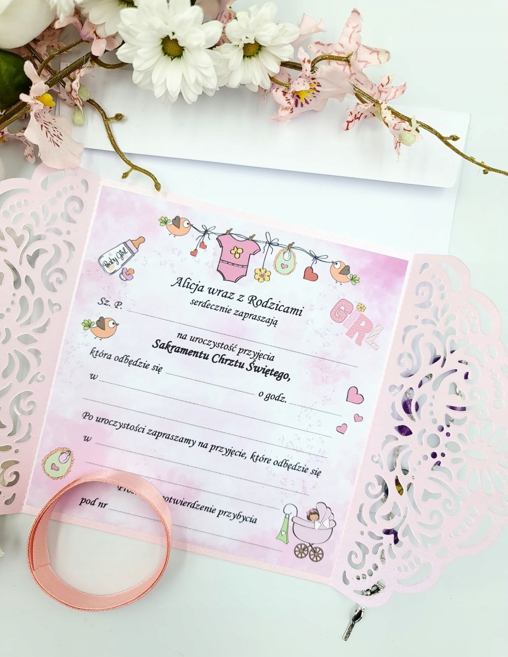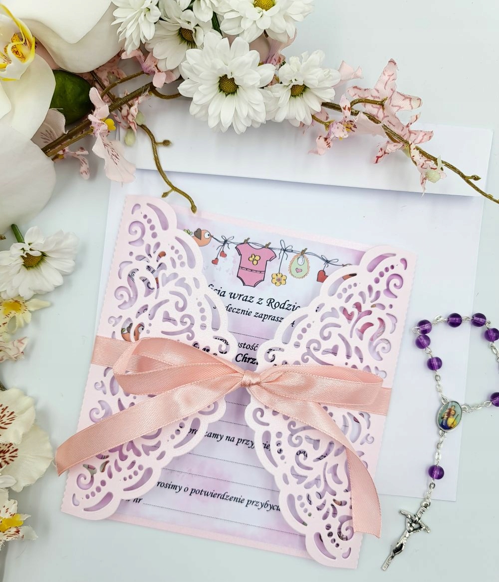 ПРЕДМЕТ ПРОДАЖУ - ГАРНІ АЖУРНІ ЗАПРОШЕННЯ ДЛЯ ДІВЧИНКИ. УНІКАЛЬНИЙ. ВИГОТОВЛЕНО З ПАПЕРУ НАЙВИЩОЇ ЯКОСТІ. НА ЗАПРОШЕННЯХ НАДРУКУВАНО ІМ’Я ДИТИНИ НА ВАШ ВИБІР, ТАК ЩО ВИ БУДЕТЕ НАПИСАТИ ЛИШЕ ІНШУ ІНФОРМАЦІЮ, ТАКУ ЯК: ІМ’Я ТА ПРІЗВИЩЕ ЗАПРОШЕНОЇ ОСОБИ, ДАТА, МІСЦЕ. КОЛІР ПЕРЛОВО-РОЖЕВИЙ. ІНШІ КОЛЬОРИ ТА ТИПИ НА ІНШИХ АУКЦІОНАХ.