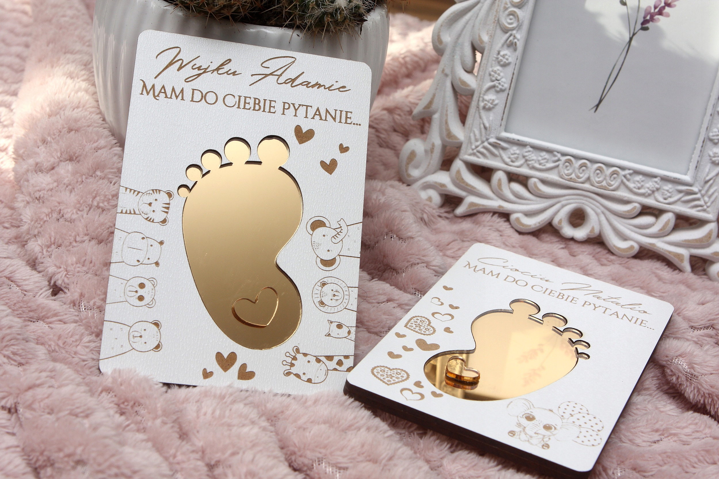 Хочете в унікальній формі запитати своїх близьких, чи будуть вони хрещеними батьком і хрещеною матір'ю вашої дитини? А може, ви шукаєте оригінальну ідею, щоб повідомити радісну новину? Персоналізована листівка-сюрприз із запитанням – це зворушливий та елегантний спосіб зробити цей момент незабутнім!