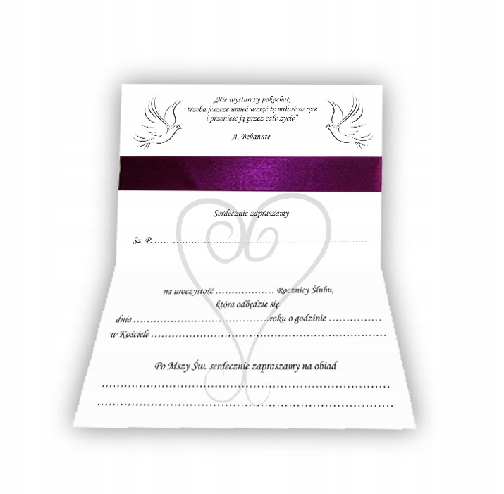 Запрошення виготовлені на глянцевому папері, що робить запрошення дуже елегантним. Папір запрошення білого кольору. Запрошення складається навпіл по ширині. Зовнішня лицьова частина містить прикрасу з декоративного паперу та зав'язаний бант.