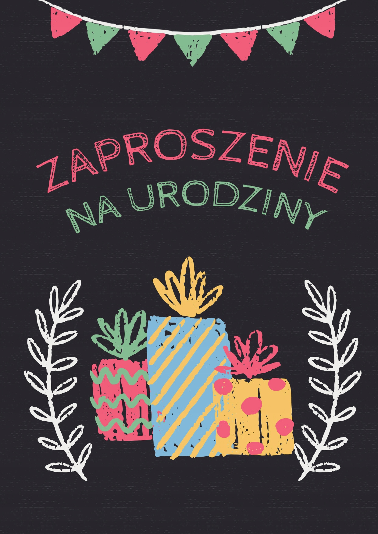 Запрошення на день народження Чорні подарунки на день народження