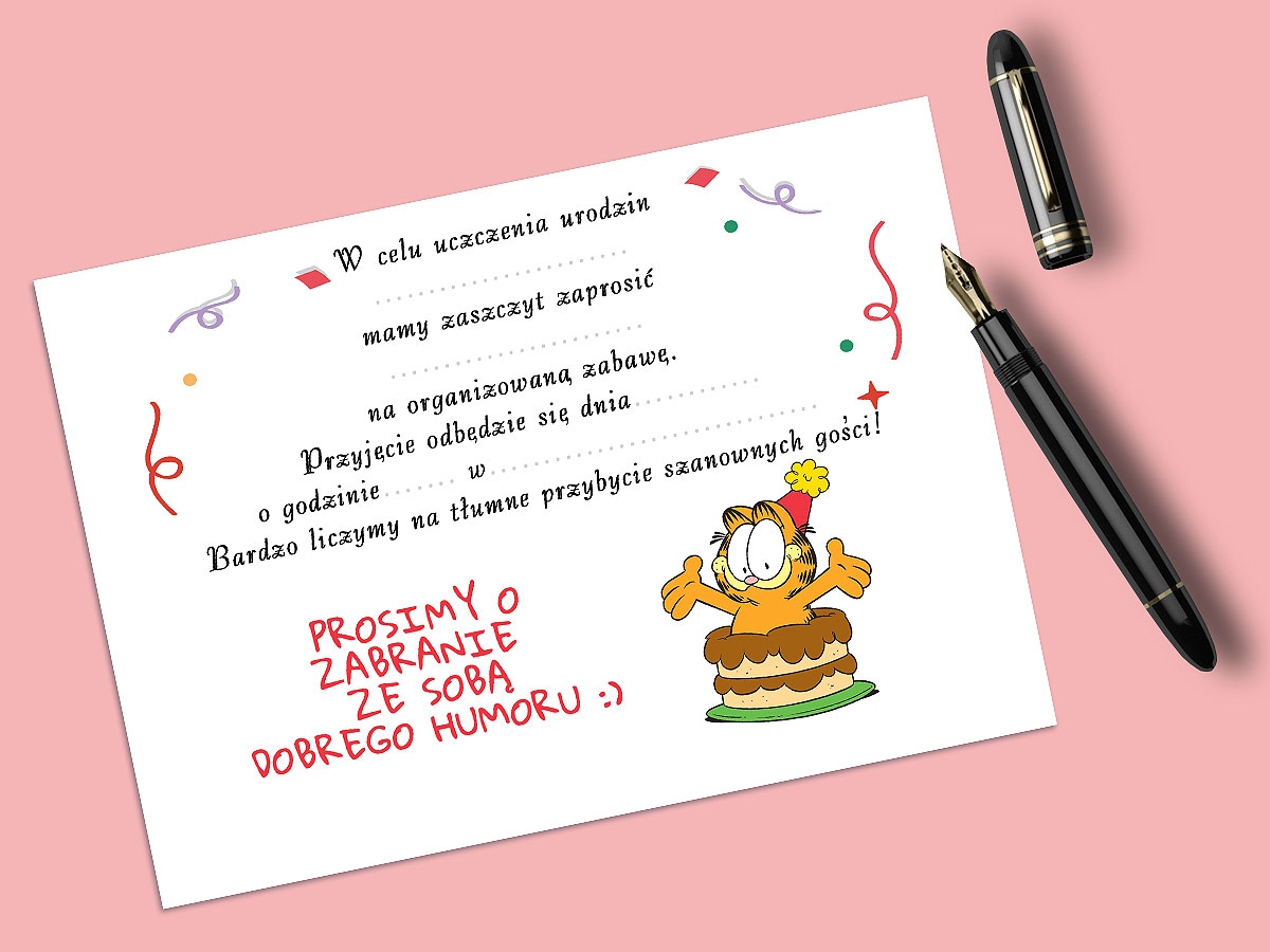 Запрошення на день народження Гарфілда. Запрошення на день народження + конверт