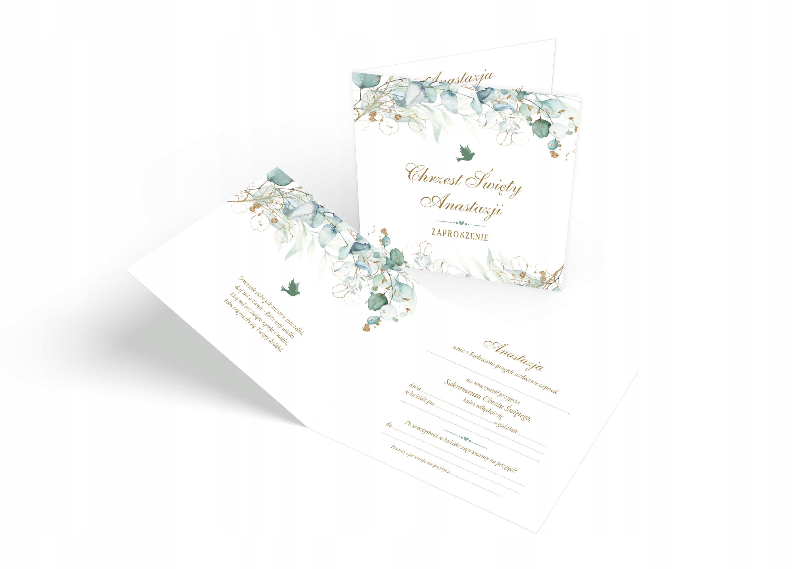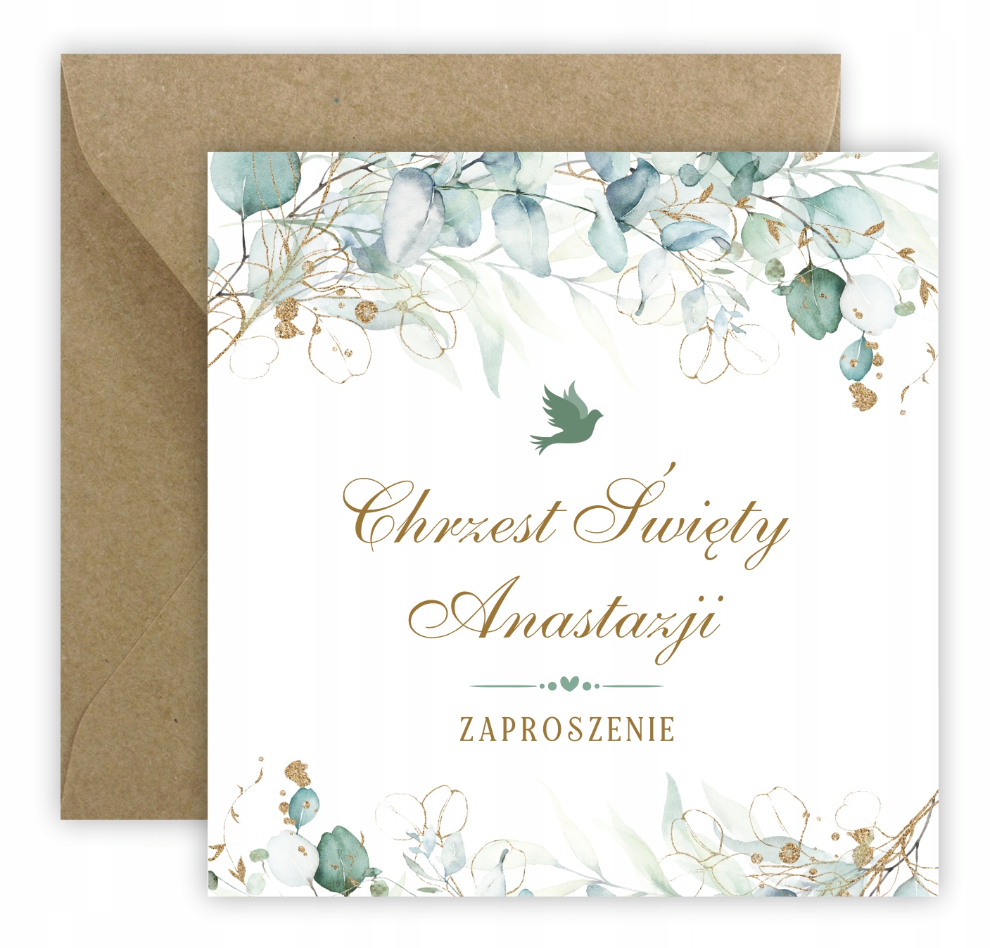 Запрошення на хрещення + ім'я + конверт евкаліпт
