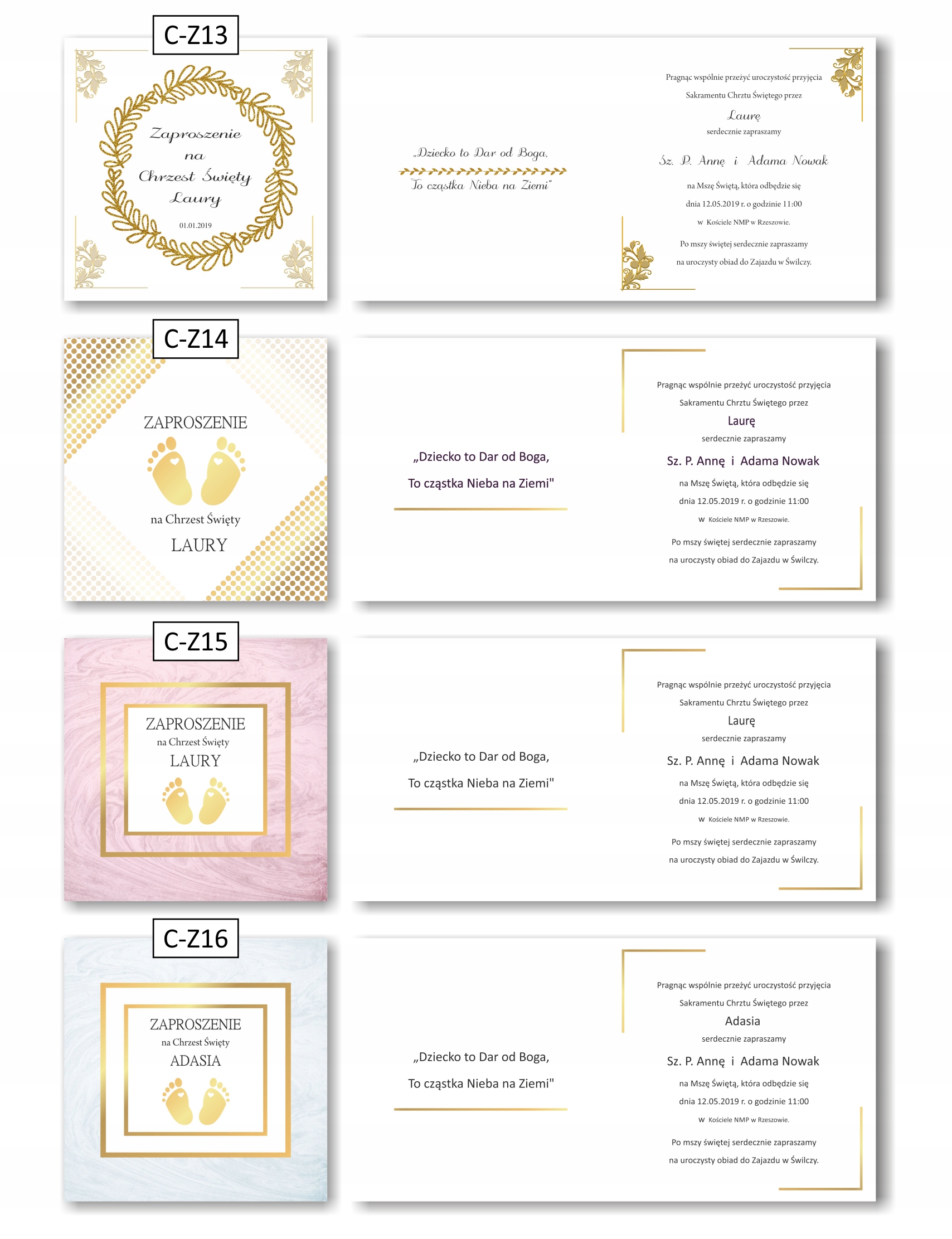 Просматривая «ПРИГЛАШЕНИЯ НА КРЕСТИЕ, квадратные, персонализация», вы можете быть уверены, что данный товар из каталога «Крещение» будет доставлен из Польши и проверен на целостность. В цене товара, указанной на сайте, учтена доставка из Польши. Внимание!!! Товары для Евросоюза, согласно законодательству стран Евросоюза, могут отличаться упаковкой или наполнением.