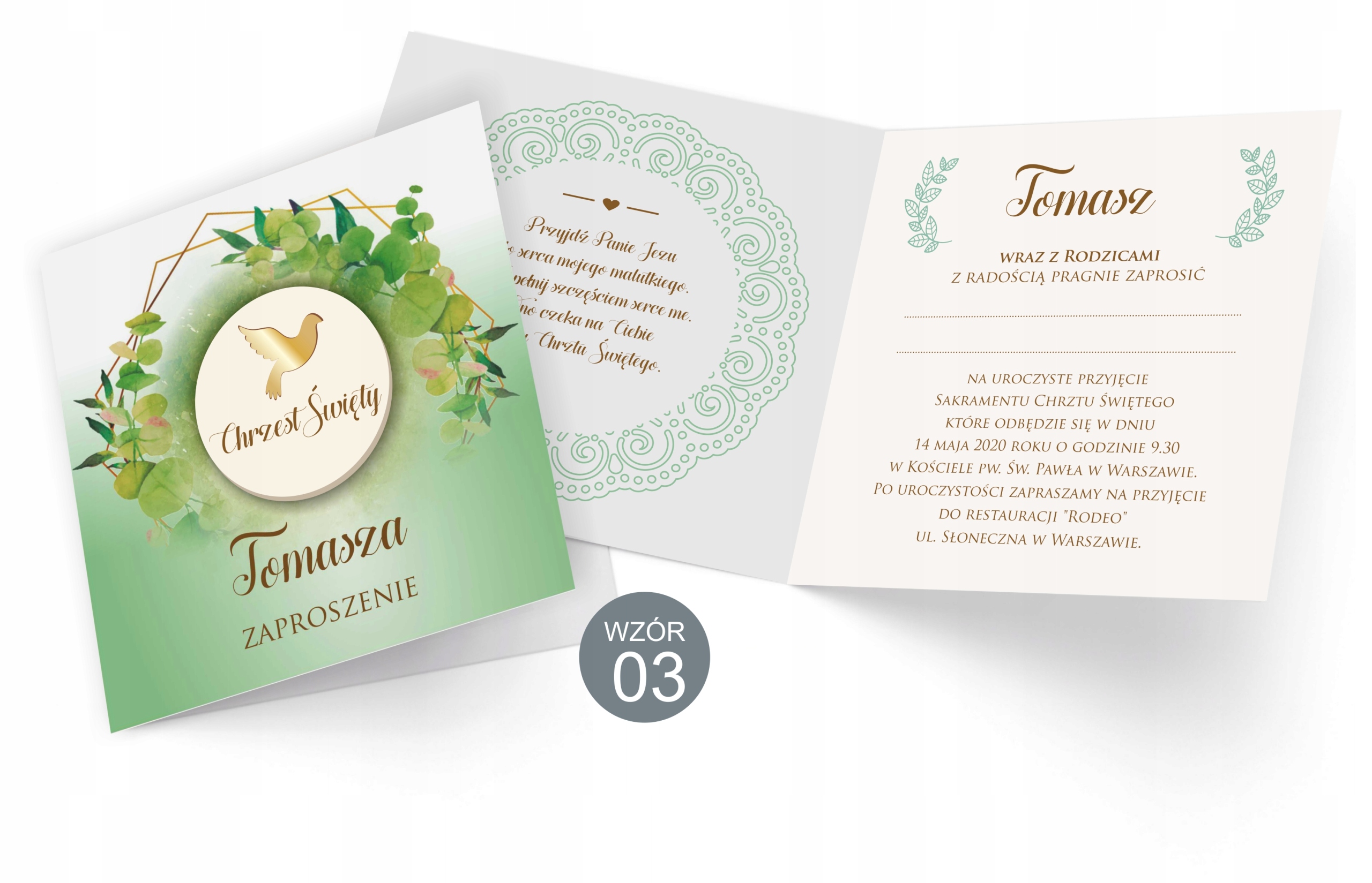 Просматривая «ПРИГЛАШЕНИЯ НА КРЕЩЕНИЕ 3D КРЕЩЕНИЕ», вы можете быть уверены, что данный товар из каталога «Крещение» будет доставлен из Польши и проверен на целостность. В цене товара, указанной на сайте, учтена доставка из Польши. Внимание!!! Товары для Евросоюза, согласно законодательству стран Евросоюза, могут отличаться упаковкой или наполнением.