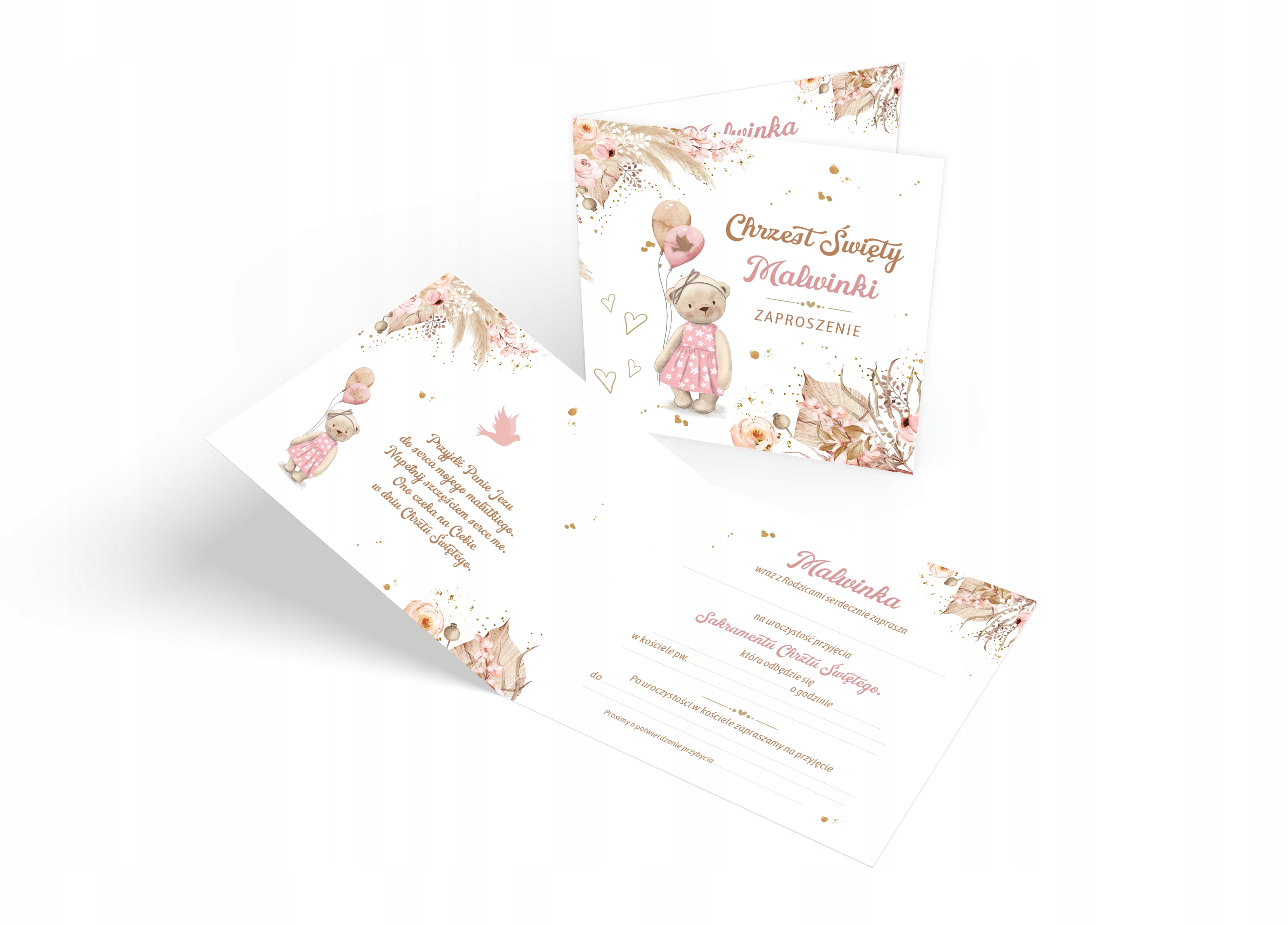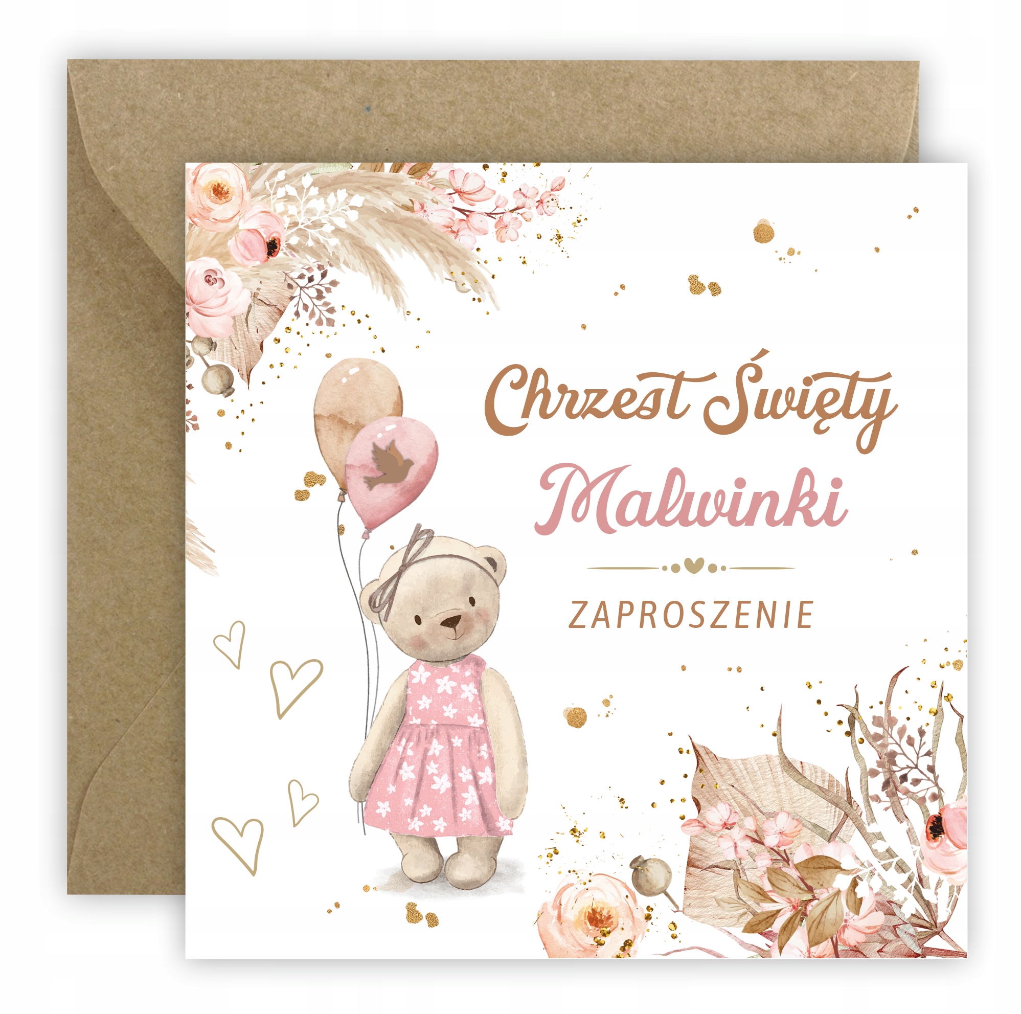 ЗАПРОШЕННЯ НА ХРЕЩЕННЯ BOHO ВЕДМЕДИК + КОНВЕРТ + ІМ'Я
