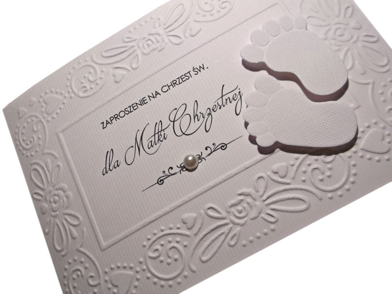 Вони тиснені та прикрашені білою перлиною та вирізаними ніжками, наклеєними на високий поролон, що дає ефект 3D